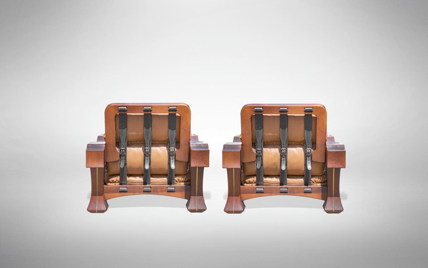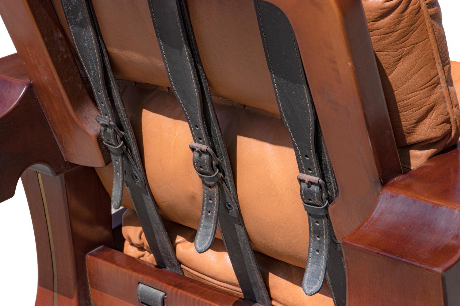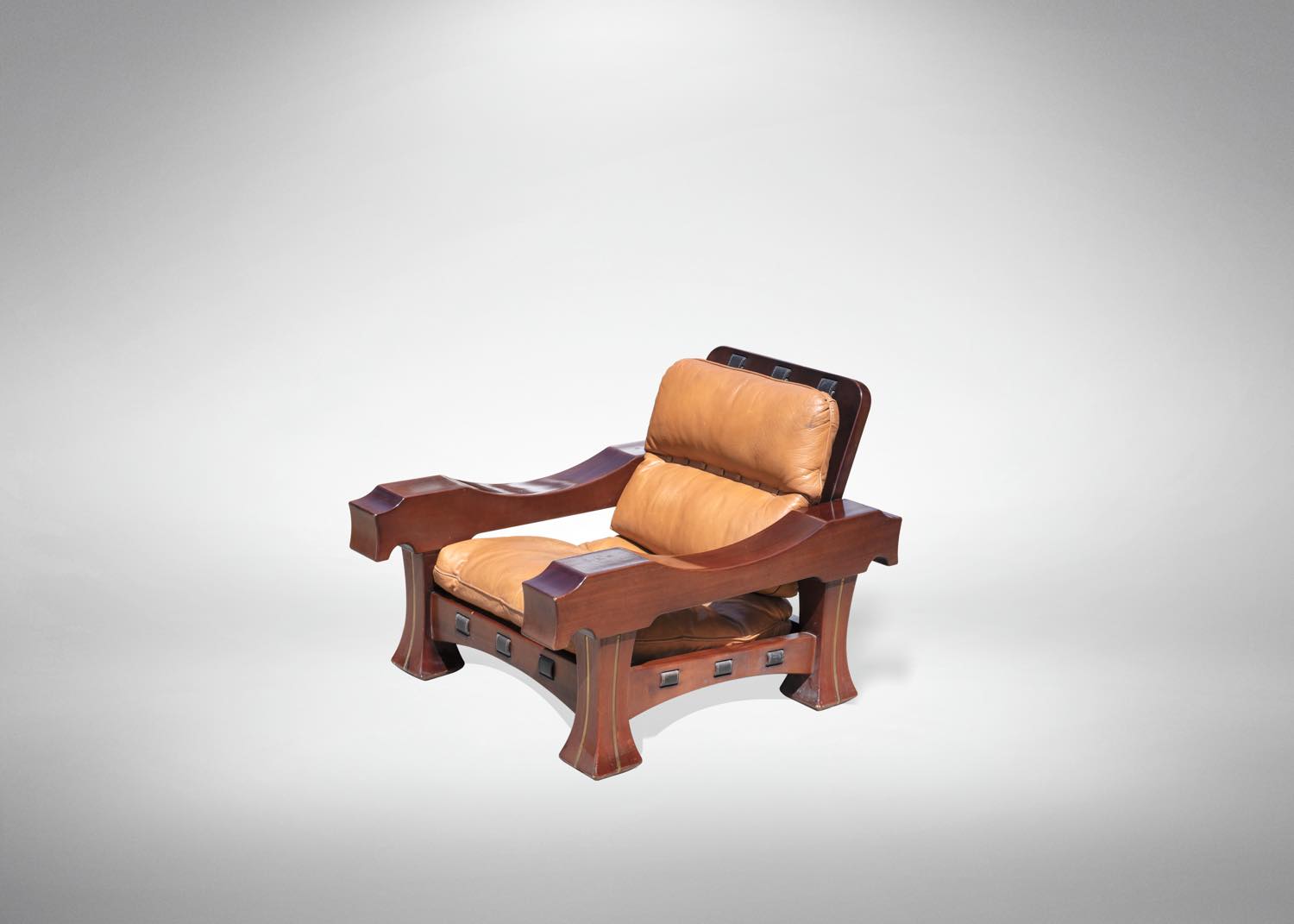 Il set è composto da un divano e 2 poltrone. Interamente in mogano, realizzato in legno e pelle.