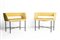 Bellissimo set di sedie vintage di colore giallo realizzate con struttura in metallo verniciato astragale, imbottitura rivestita in tessuto, estremità in ottone.