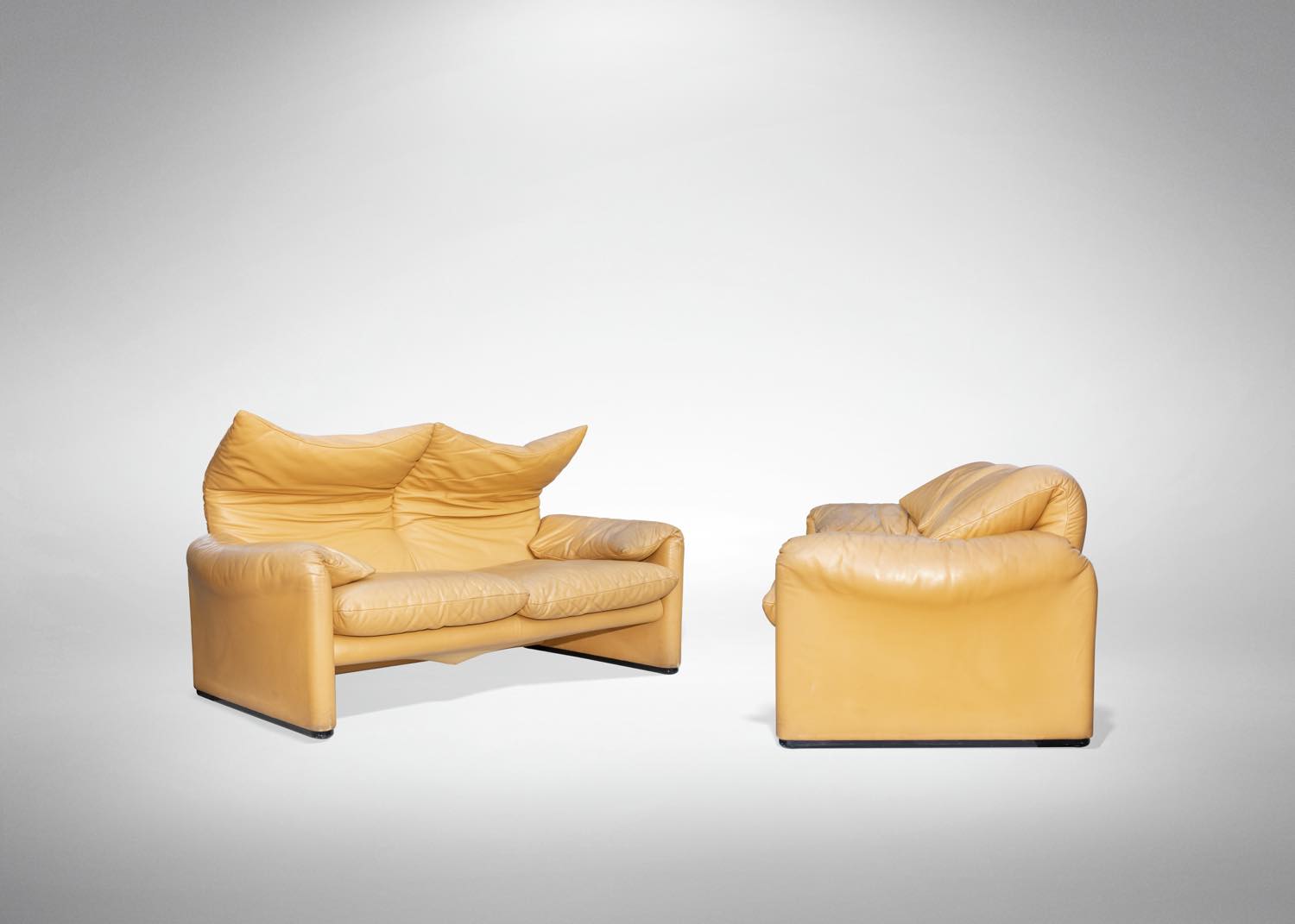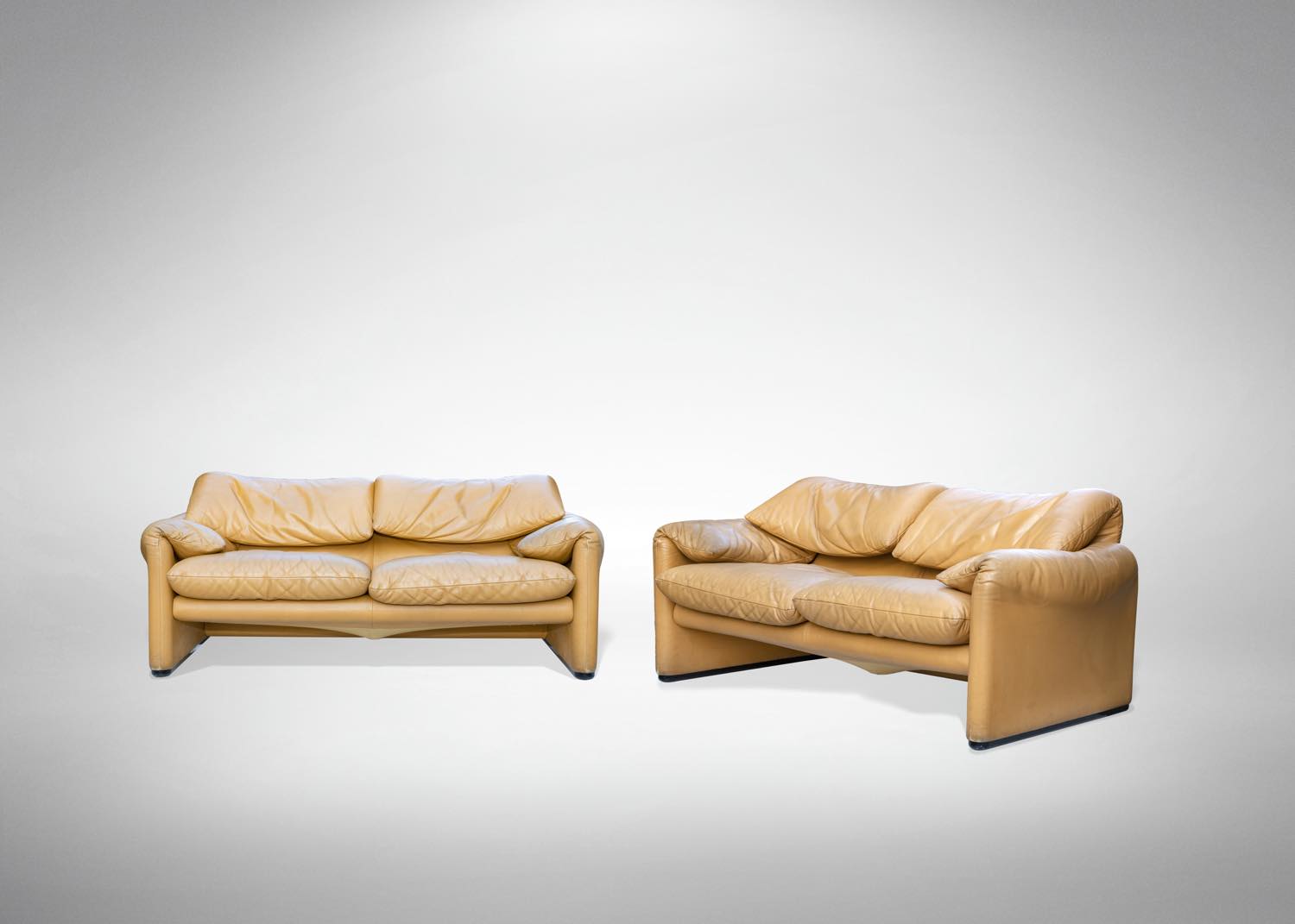 Coppia di Sofà realizzati da Vico Magistretti per Cassina in pelle gialla.