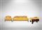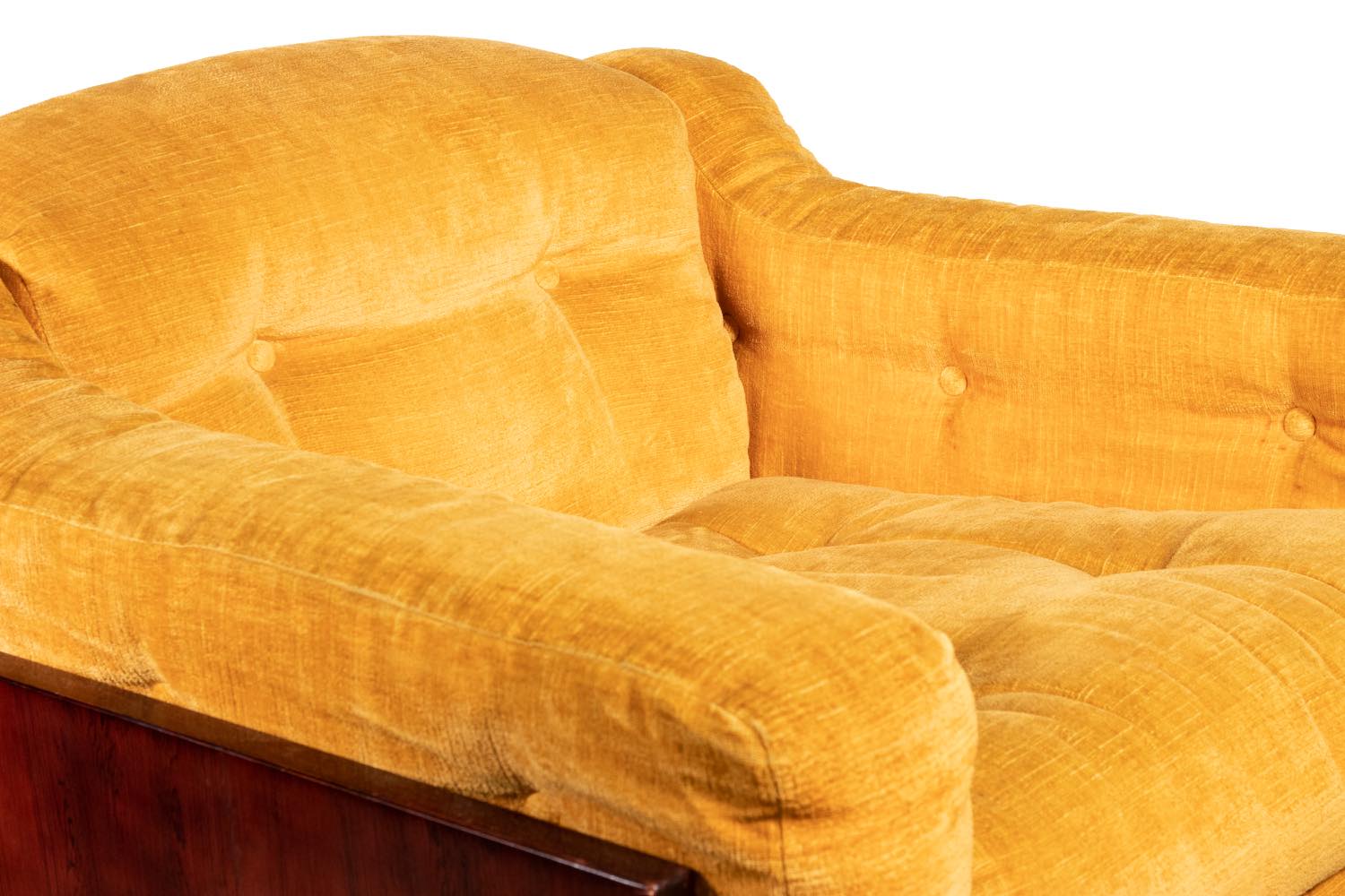 Set da salotto anni '70 in palissandro e velluto giallo.