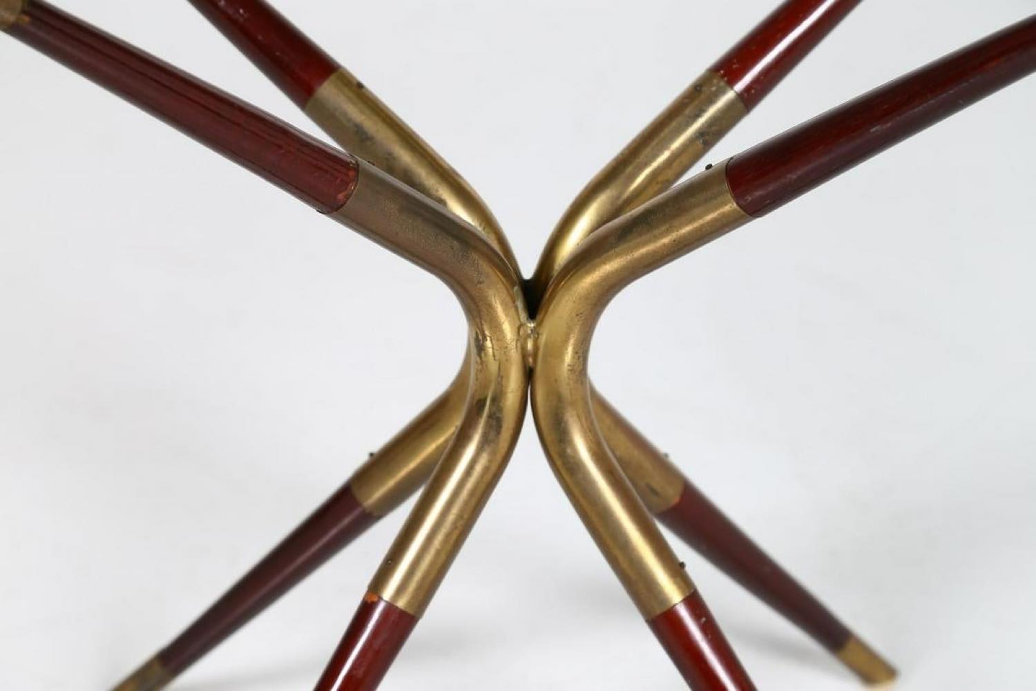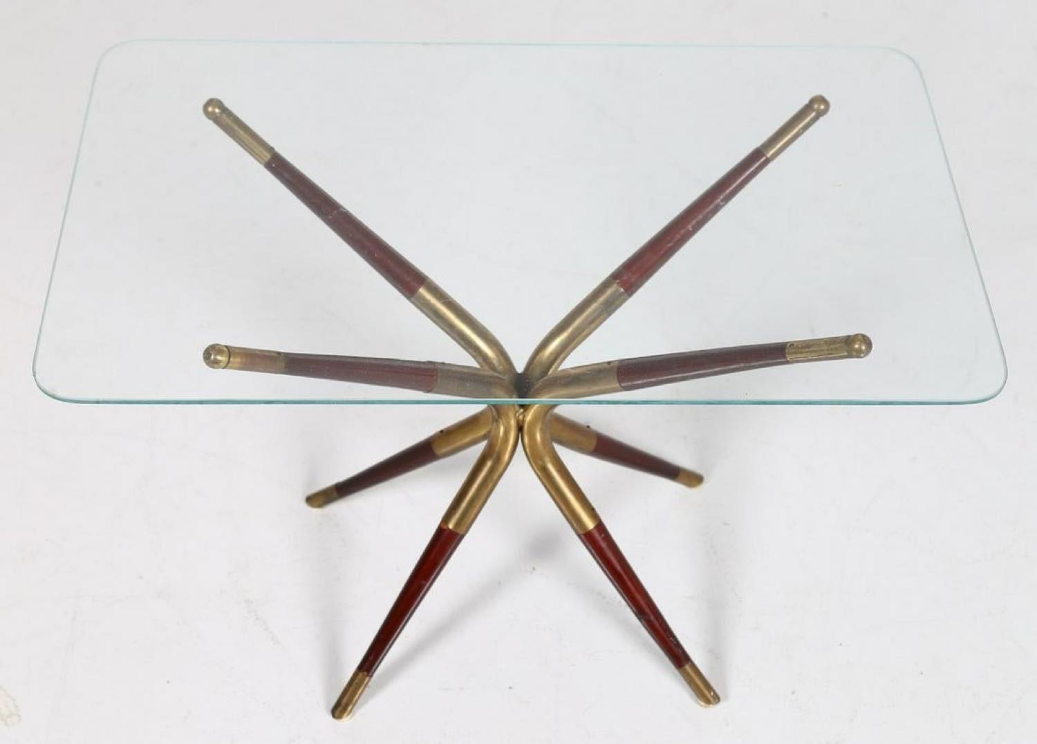 Tavolino italiano in legno di mogano, ottone e cristallo molato.