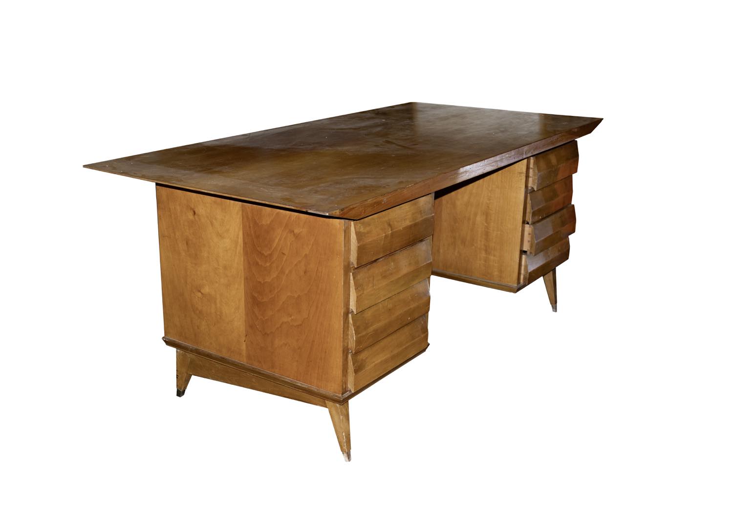 Monumentale scrivania in legno con cassetti laterali realizzata da Melchiorre Bega.