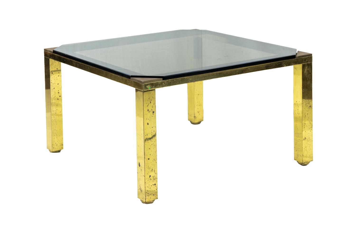 Bel tavolo vintage interamente in ottone con ripiano in vetro.