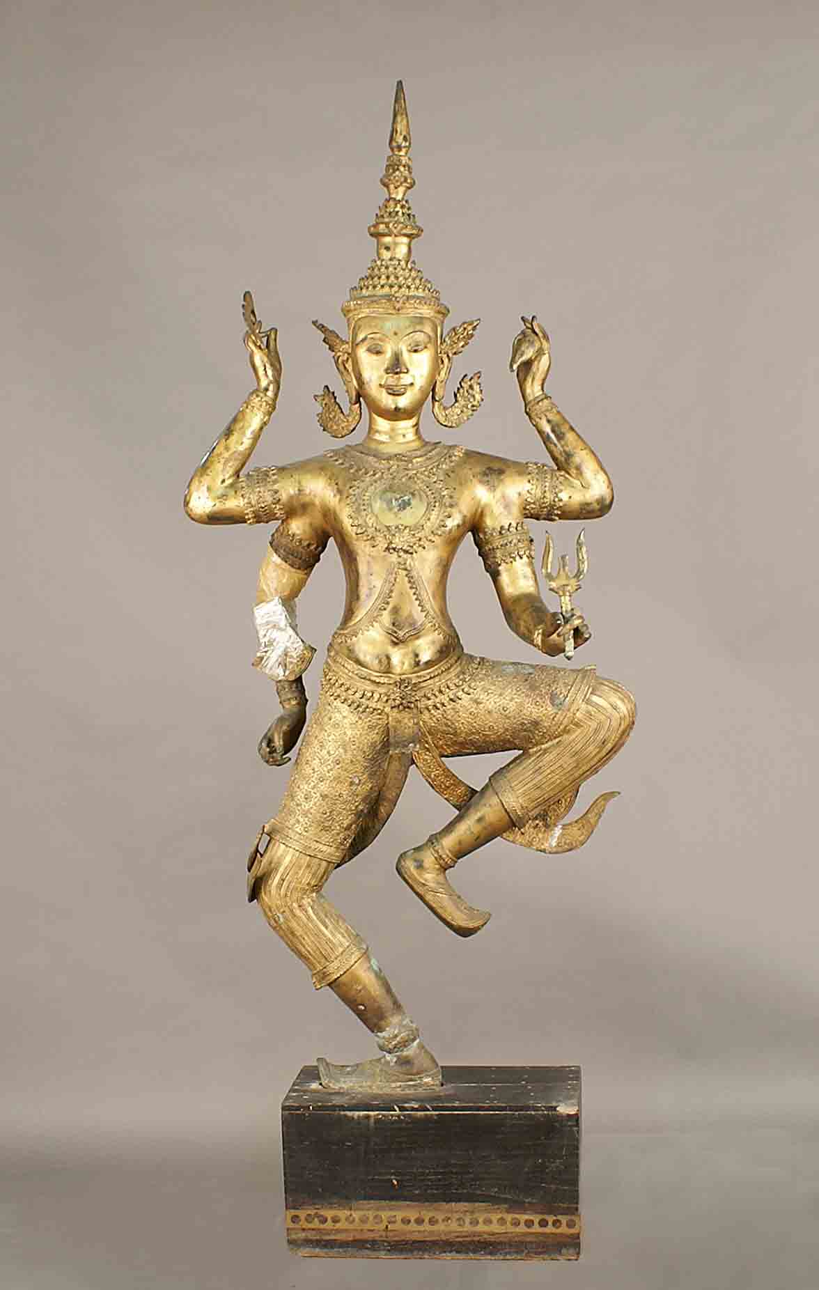 Scultura in metallo dorato raffigurante la dea Kalì, vecchia manifattura...