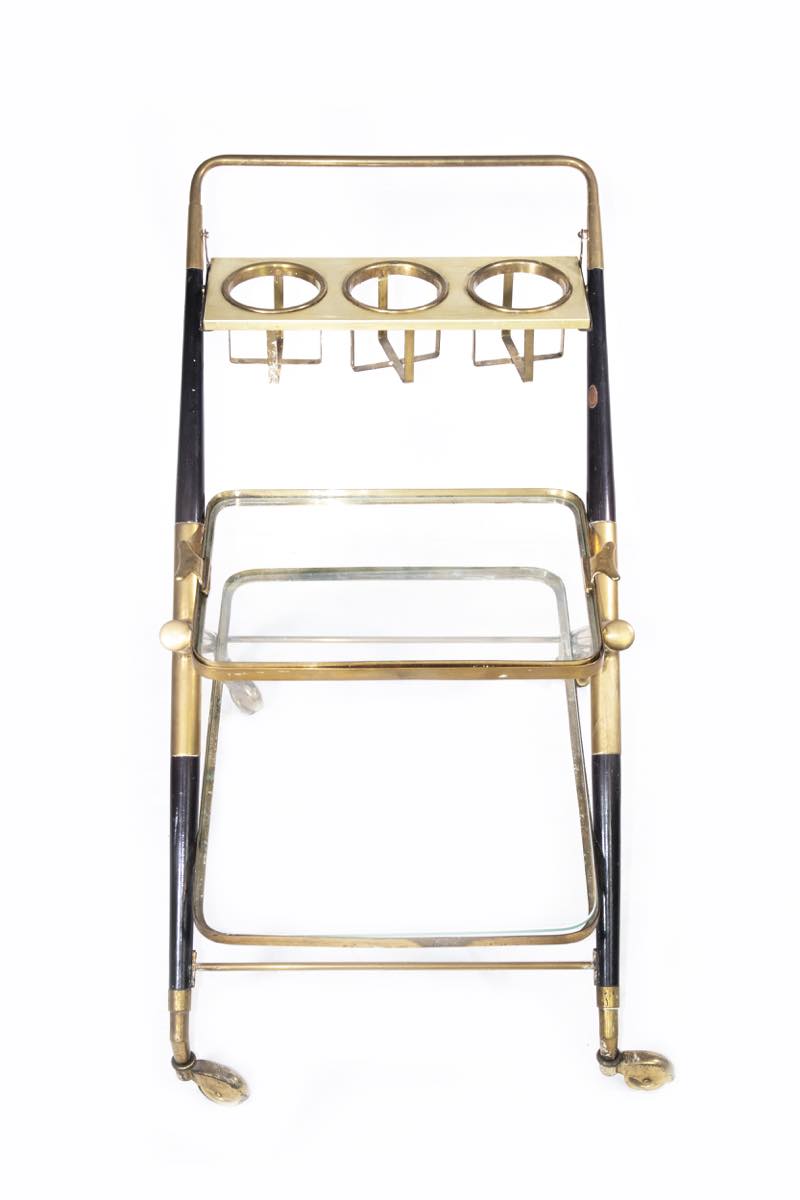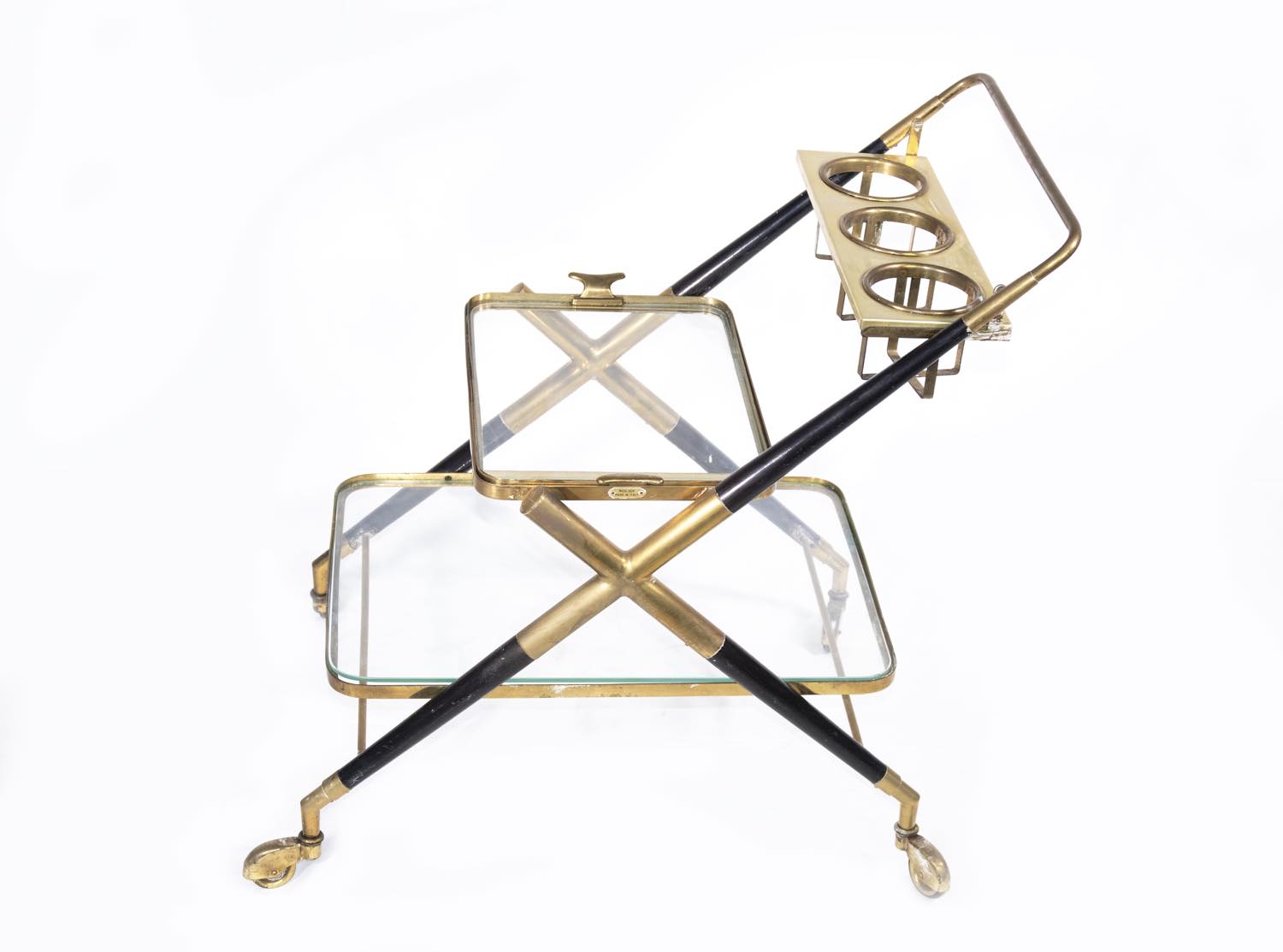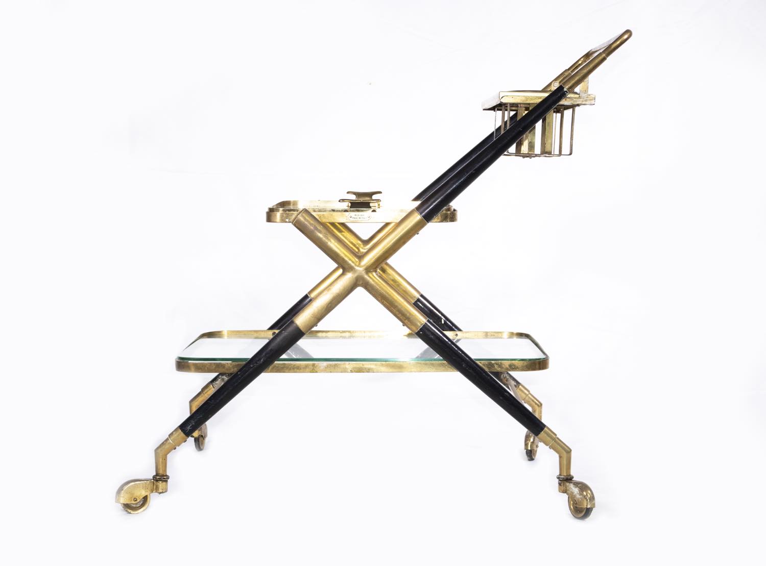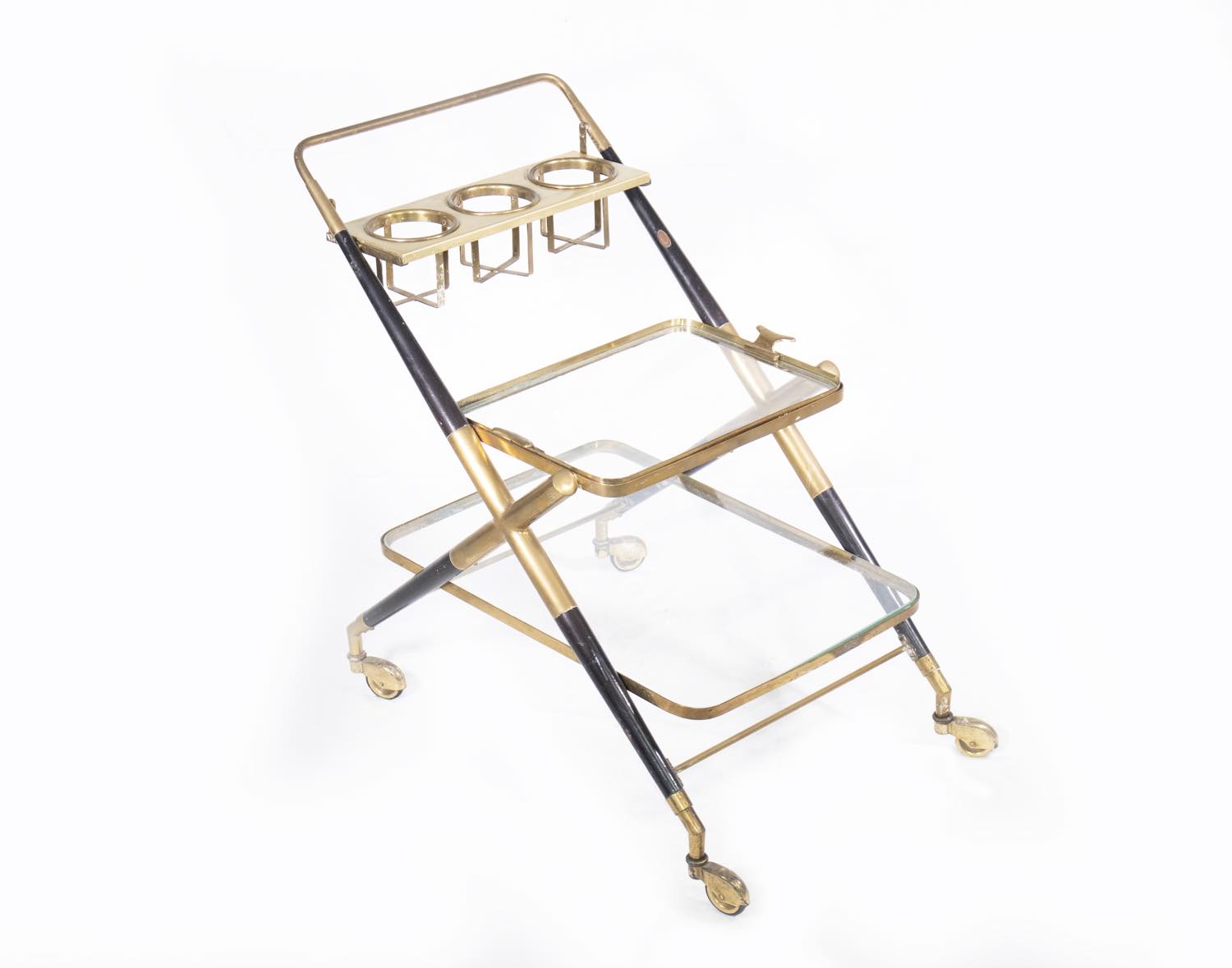 Carrello bar nero in legno e ottone con ripiani in vetro. Condizione perfette.