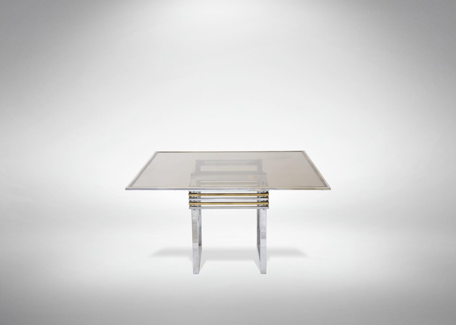 Tavolo cromato in ottone realizzato su design originale di Romeo Rega per Metalarte nel 1970.