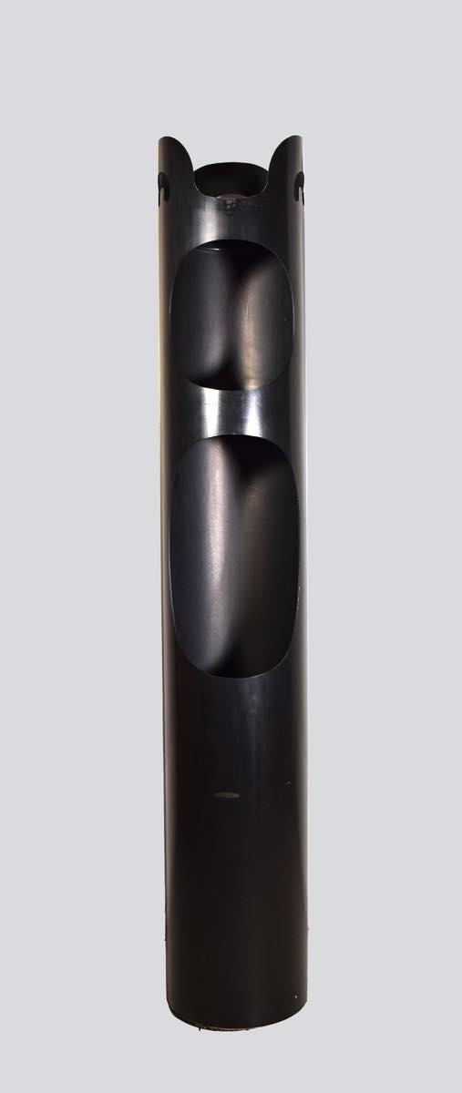 Appendiabiti da terra in plastica nera con aperture laterali per appendere anche chiavi e ombrelli. Realizzato da Mari per Danese Milano nel 1968. Eyichetta sulla base.