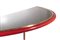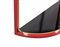 Raro esemplare di consolle rossa, nera e giallo oro, laccata in metallo, ottone e vetro.
