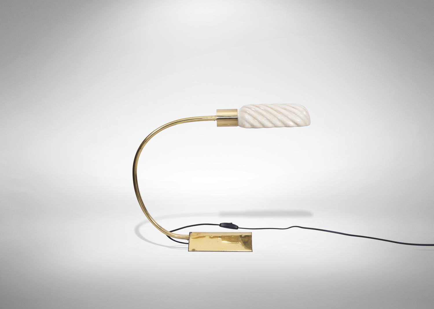 Lampada decorativa da tavolo con corpo in ottone realizzata da Tommaso Barbi.