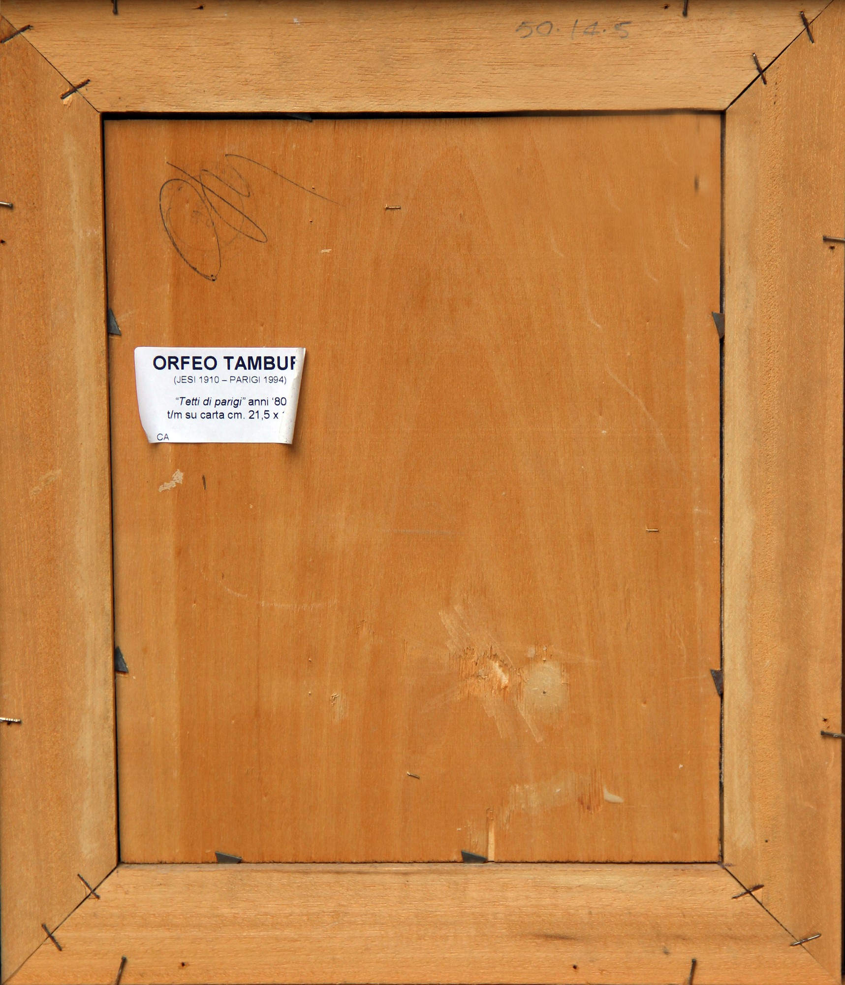 TAMBURI Orfeo, Tetti di Parigi, tecnica mista su cartoncino, cm 21,5x17
