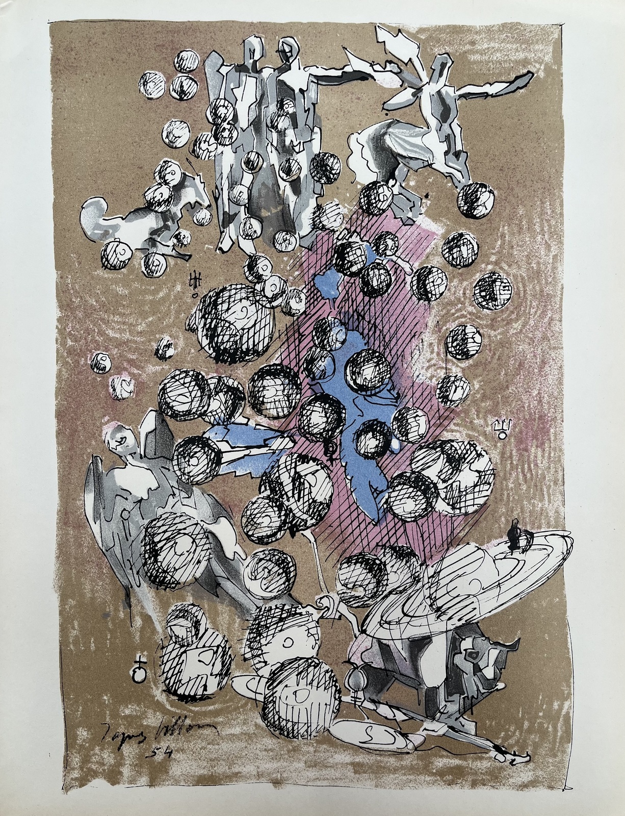 VILLON JACQUES (1875 - 1963) Senza titolo. 1959. Litografia. Cm 24,20 x 31,50. Firma e anno in basso a sinistra a stampa. 1954. Opera proveniente da "XXe siècle. Psychologie de la technique. N° 12. Maggio-giugno 1959". Edizione totale: 1500 esemplari. Editore: San Lazzaro, Paris, 1959. Litografie realizzate da Fernand Mourlot.