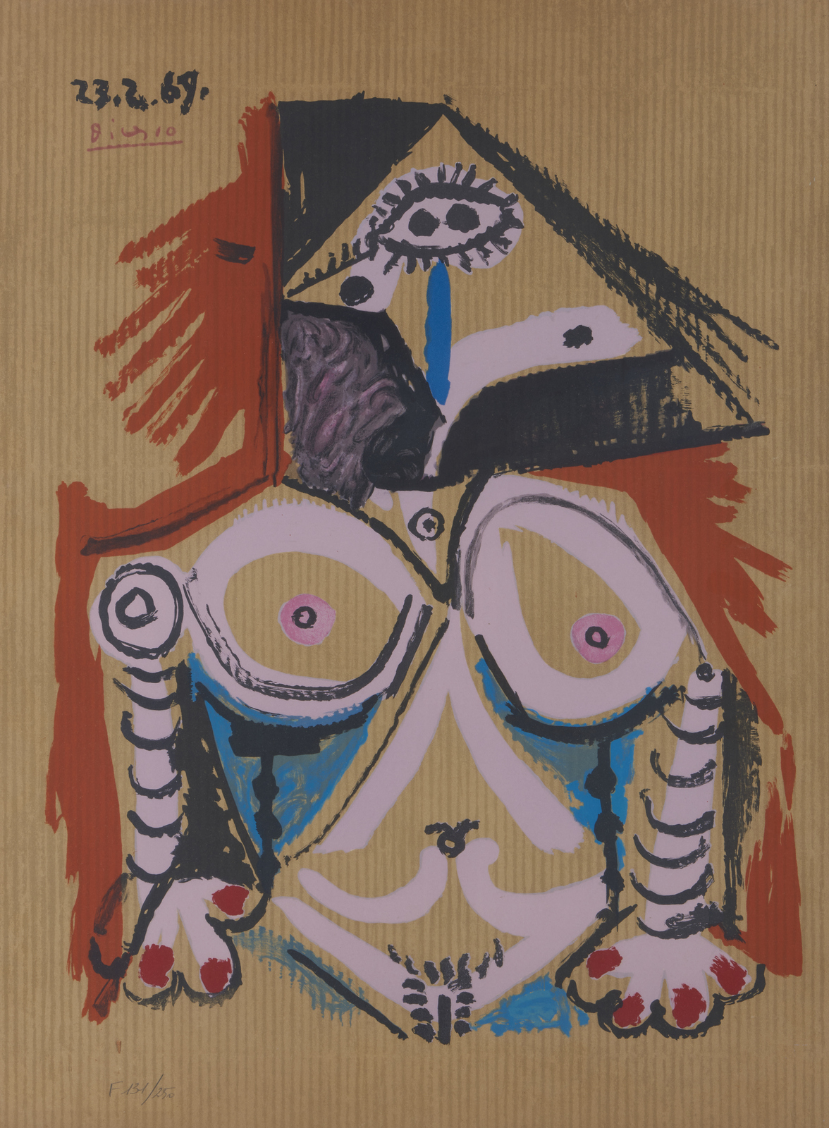 PICASSO PABLO (1881 - 1973) After. Da Imaginary Portraits. 1969. Litografia. Cm 50,00 x 65,50. F 131/250. Firma e anno in alto a sinistra in lastra. Foglio proveniente dalla cartella Imaginary Portraits, 1969. Edizione totale: 250 esemplari contrassegnati con la lettera F per il mercato francese, pubblicati da Cercles d’Art Paris; 250 esemplari contrassegnati con la lettera A per il mercato americano, pubblicati da Harry N. Abrams New York. Pubblicazione: Picasso Posters, C. Czwiklitzer, Art-C.C Paris, 1970, nr. 409. Cornice presente