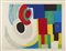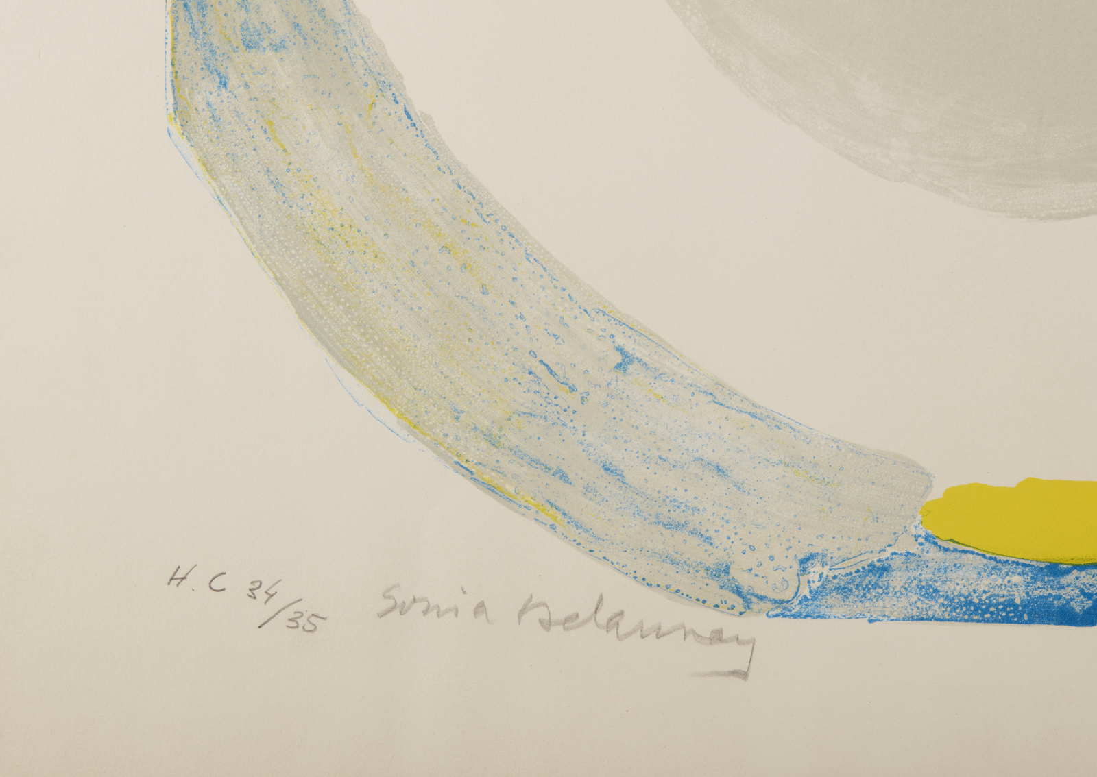 DELAUNAY SONIA (1885 - 1979) Contrastes. Litografia. Cm 76,00 x 58,30. HC 34/35. Tiratura e firma in basso a sinistra a matita. Titolo al retro. Cartigli descrittivi Berggruen & Cie, Parigi e Galleria Il Vertice, Milano. Anni'70. Lievi difetti. Cornice presente