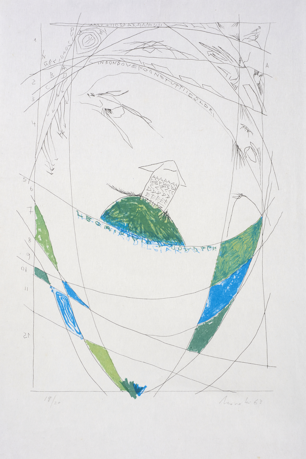 NOVELLI GASTONE (1925 - 1968) In fondo vengono tutti i colori. 1963. Litografia. Cm 34,00 x 52,50. 18/20. Tiratura, firma e anno in basso a matita. Lievi difetti.