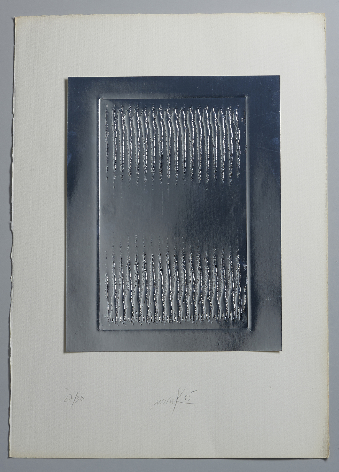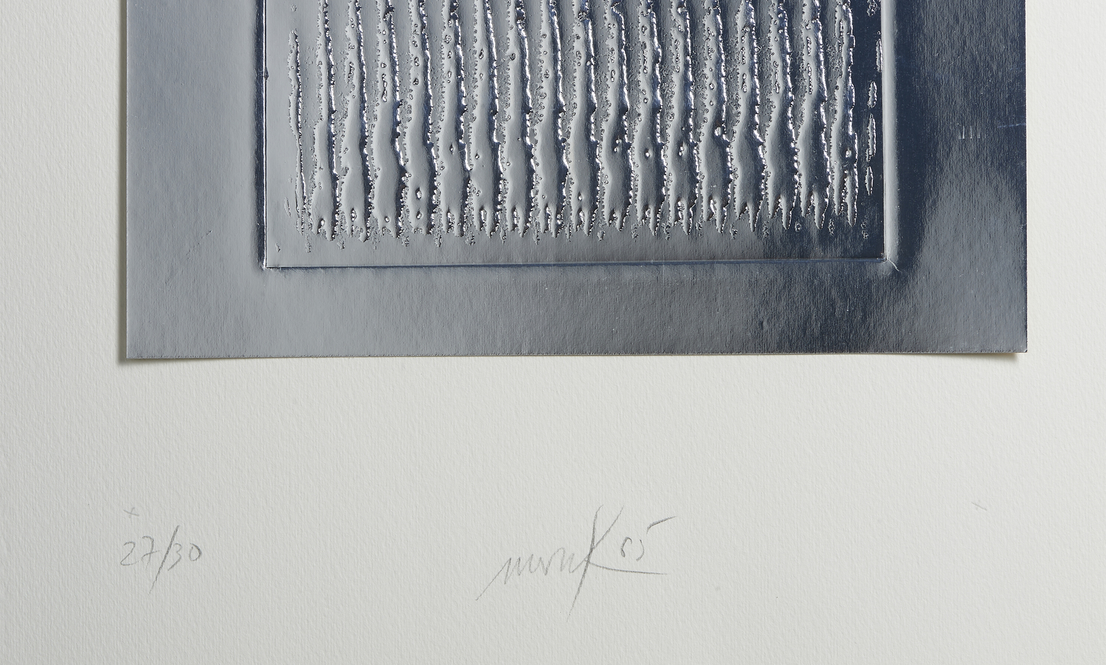 MACK HEINZ (n. 1939) Senza titolo. 1965. Calcografia. Cm 35,00 x 50,00. 27/30. Tiratura, firma e anno in basso a matita. Dimensione del cartoncino: 31x24 cm. Dimensione lastra: 26x16.5 cm. Edizioni La Quercia, Milano. Provenienza: Collezione Lana, Milano.