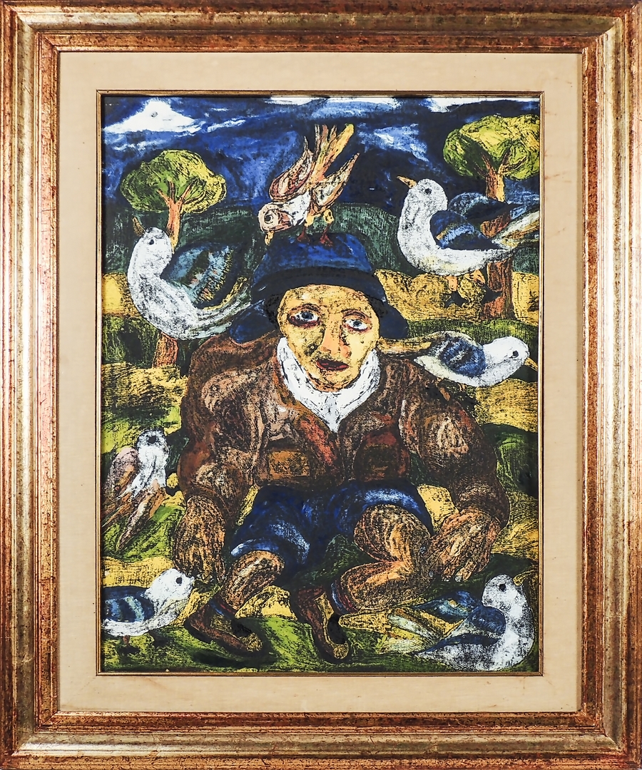 BEPPE SERAFINI (1915-1987) Figura - Figure olio impresso su carta applicata a cartoncino - printed oil on paper laid on cardboard, firmato, in cornice cm 70x50