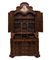 Alzata a due ante con specchi incorniciati da spesse modanature, con all'interno una serie di ripiani sottesi da grembialine, tre cassetti e portina centrale.