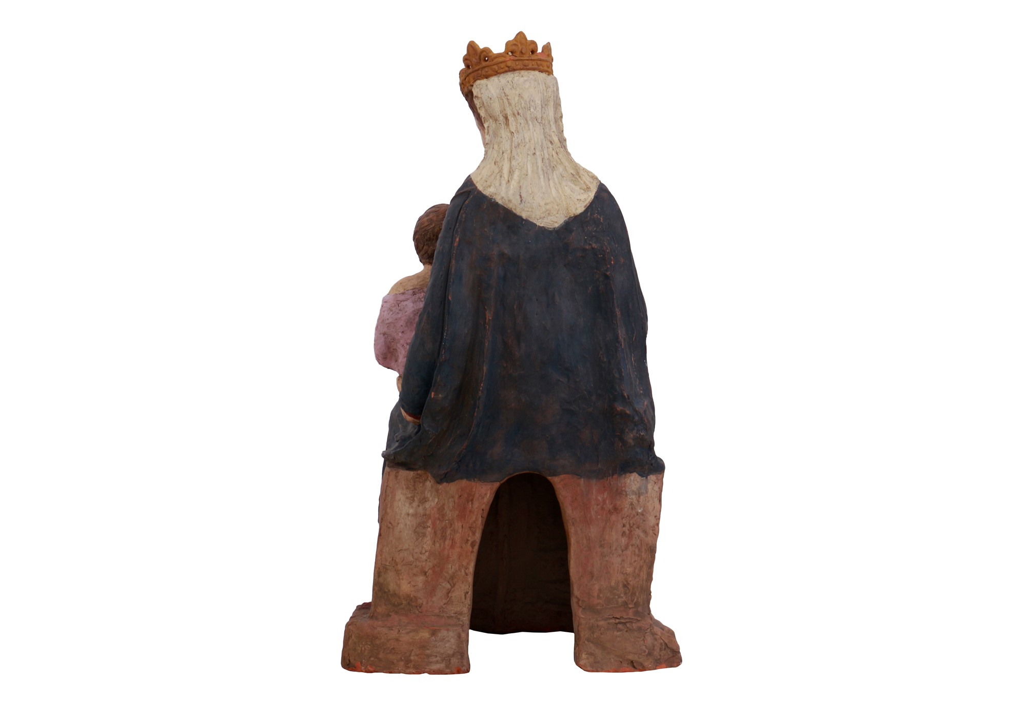 Scultura in terracotta policroma raffigurante Madonna in trono con bambino