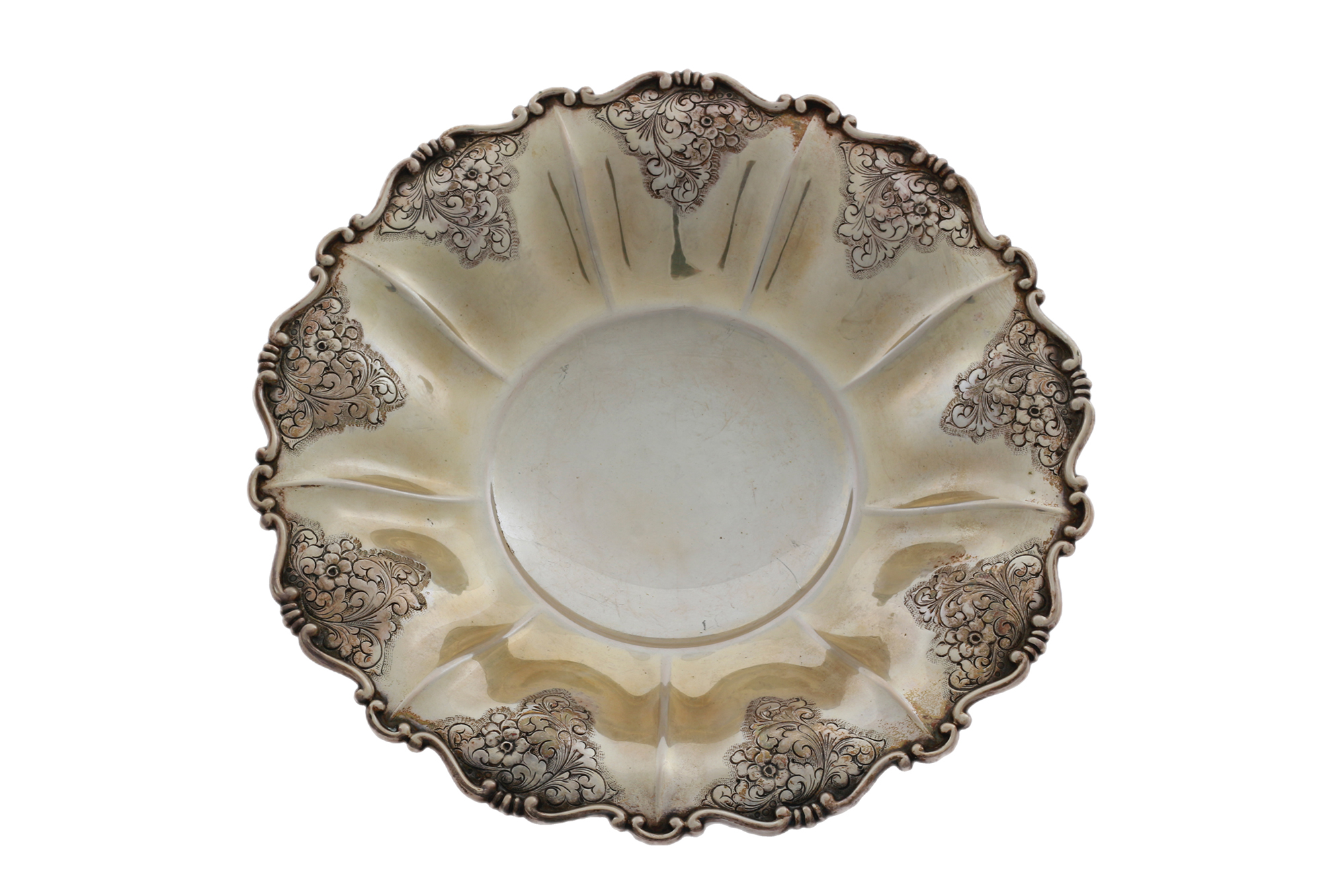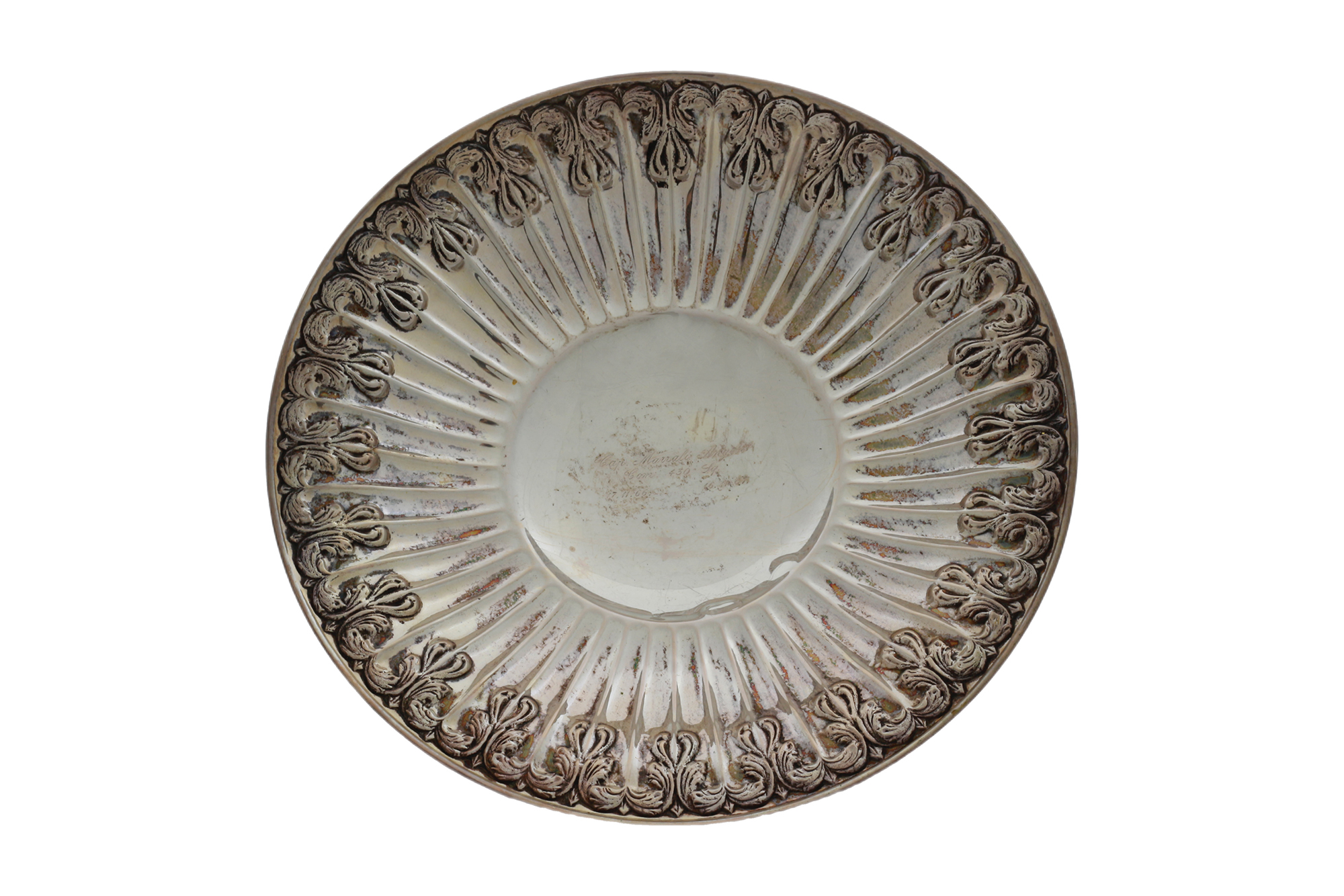 Lotto composto da alzata cesellata e coppia di alzate in argento 800/000