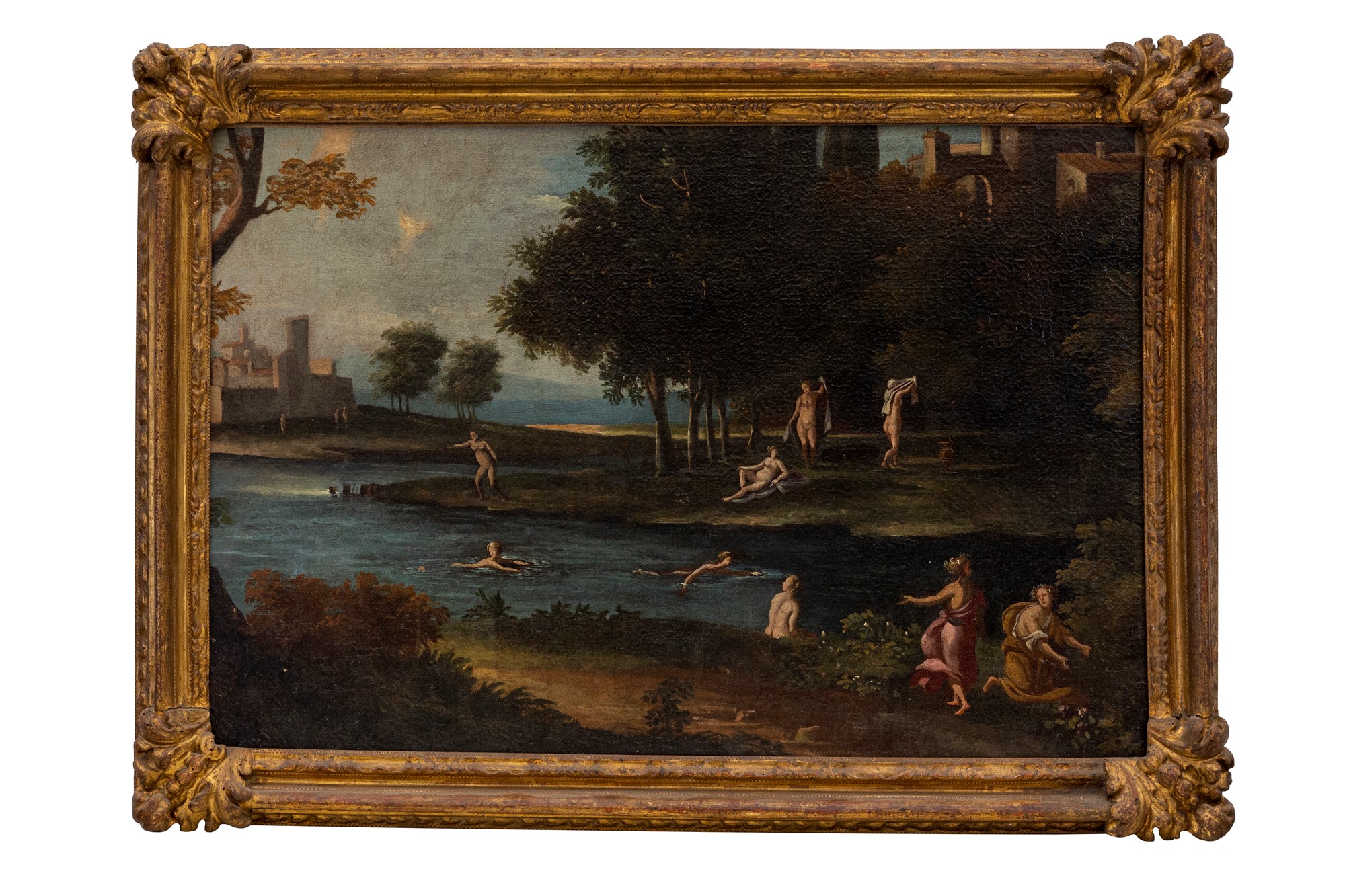 Pittore romano del XVIII secolo Scena di bagni al fiume