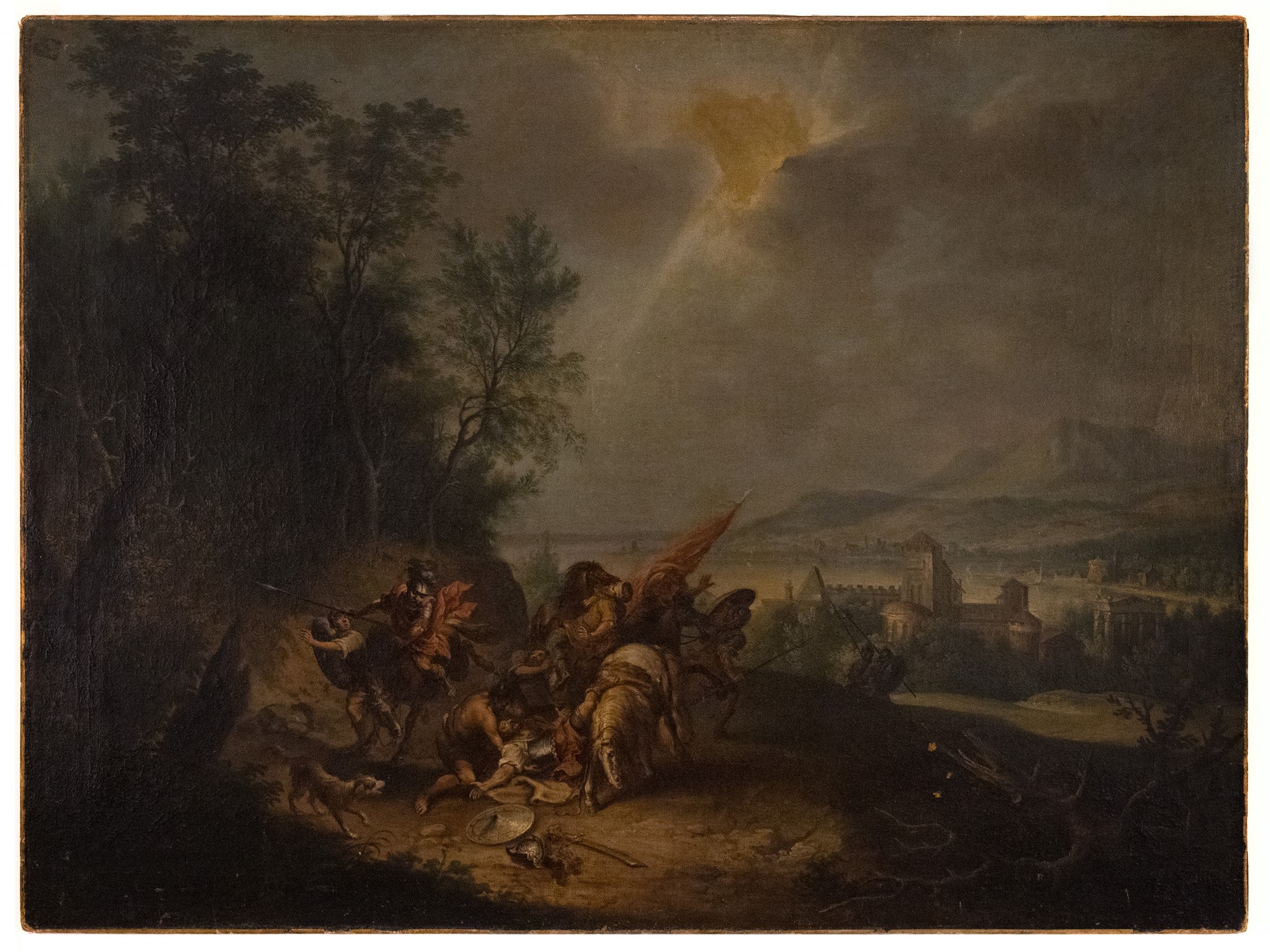 Pittore veneto del XVII secolo Paesaggio con guerrieri
