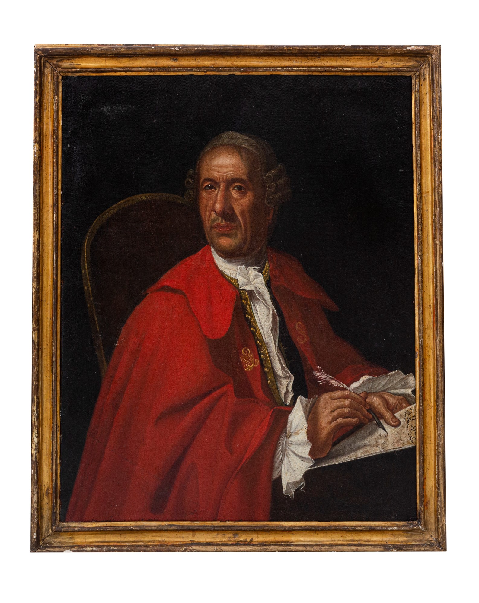 Lot 165 | Pittore dell'Italia centrale del XVIII secolo Gentiluomo che scrive una lettera indirizzata all'Ill.mo Sig. Francesco Patrizi