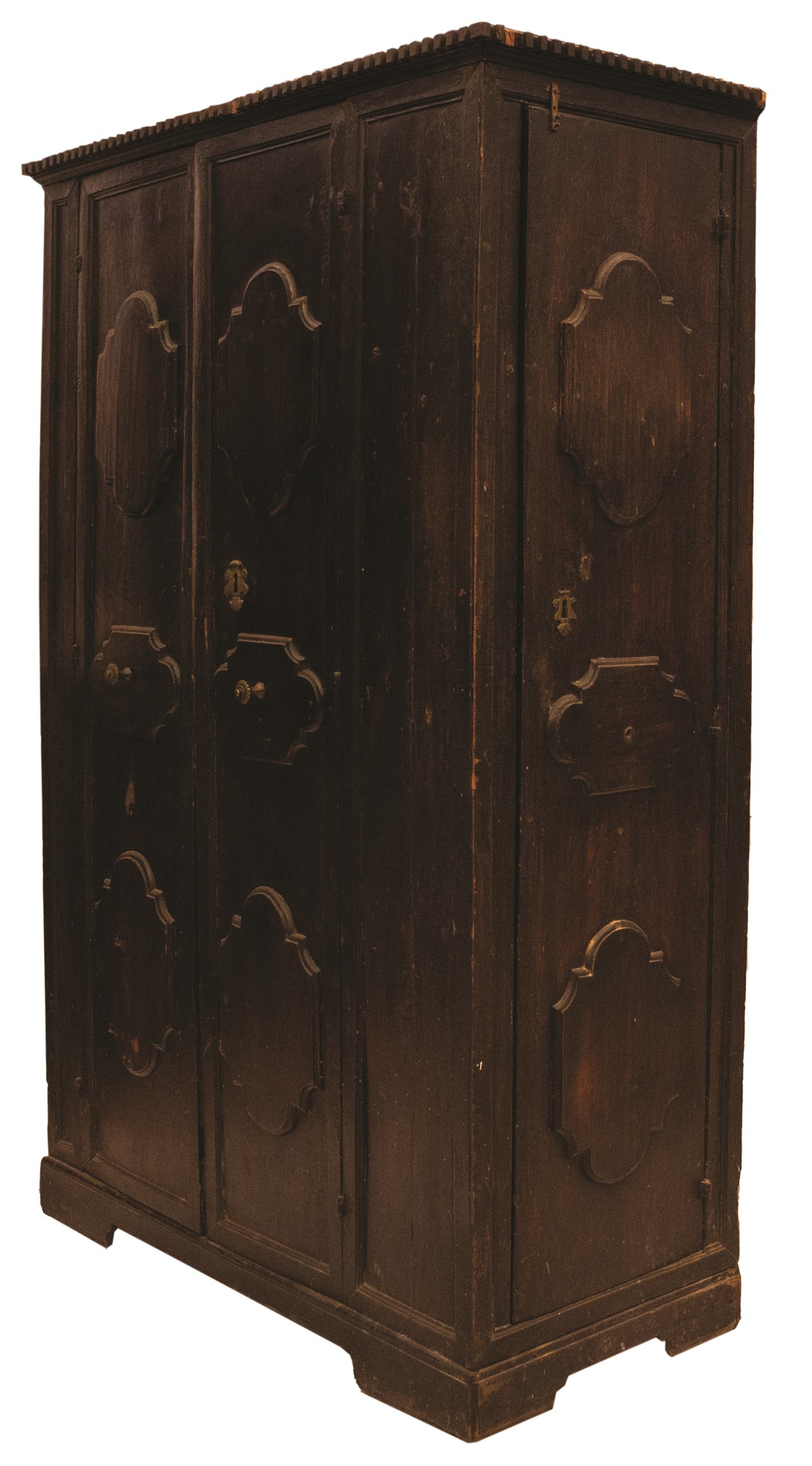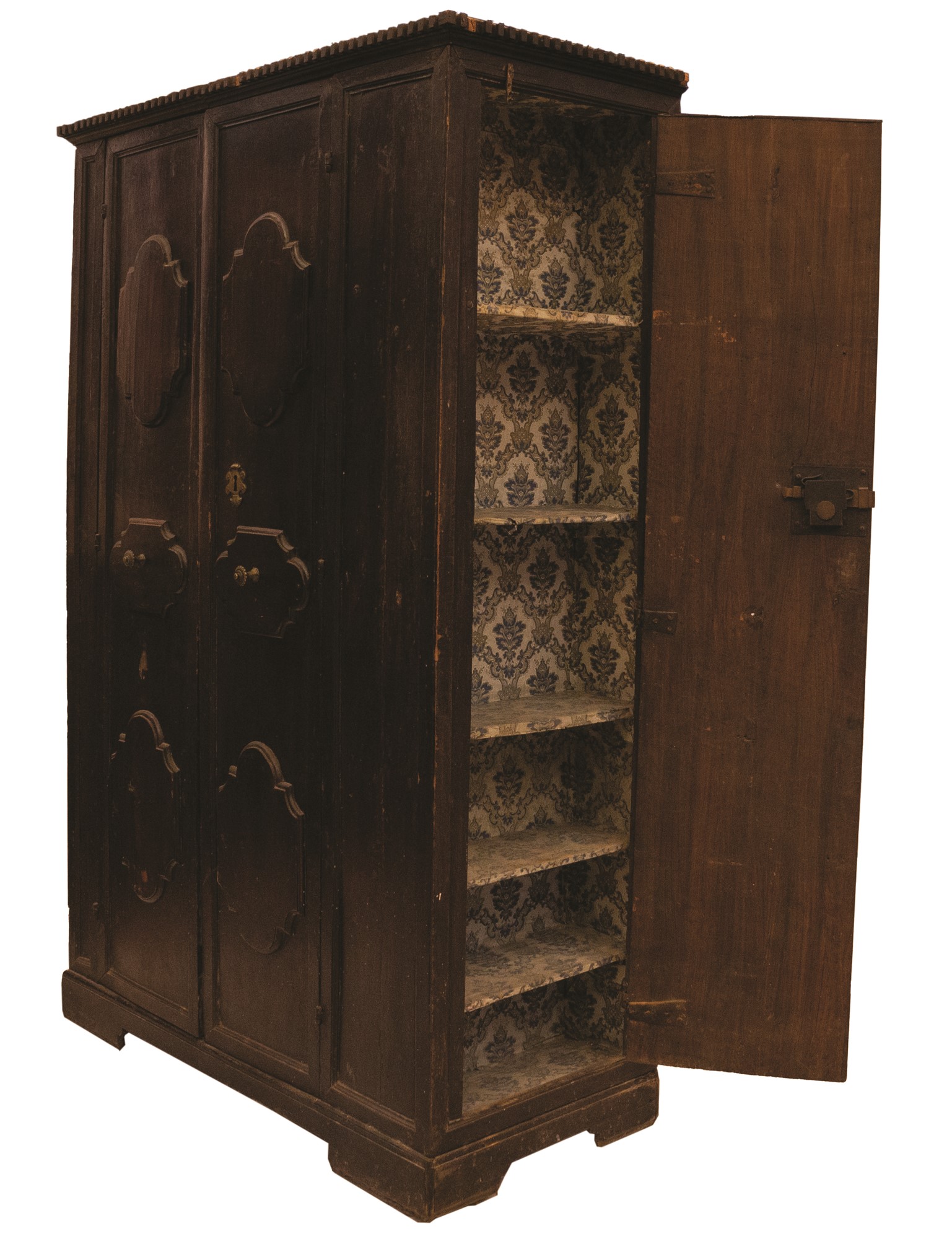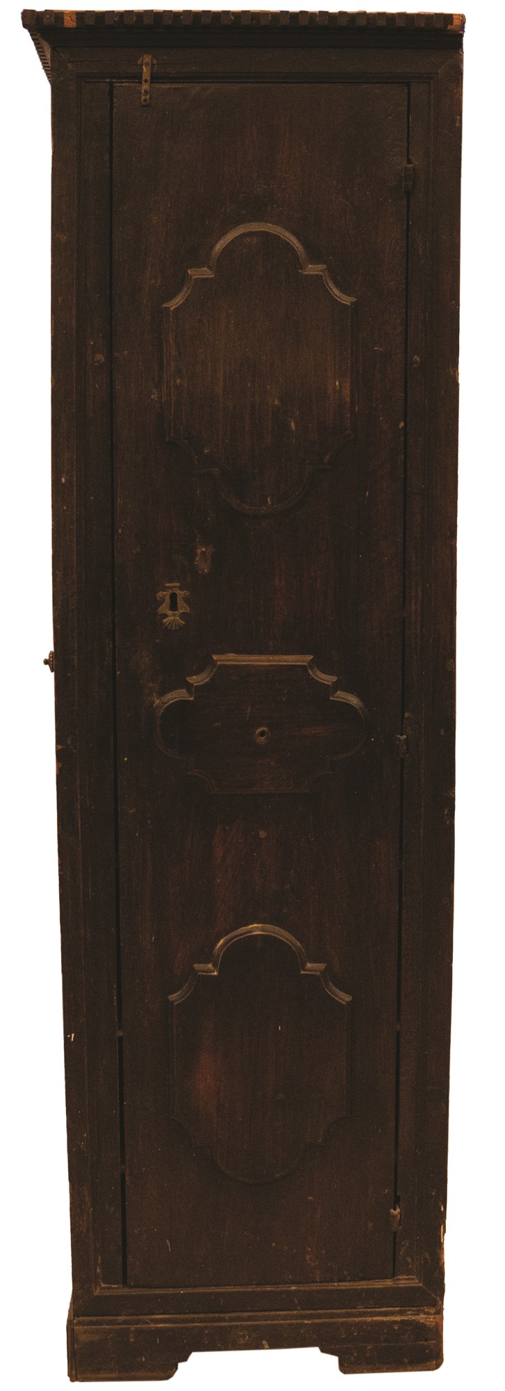 Scantonato sul lato sinistro. Sportello laterale sul lato destro a sei ripiani.