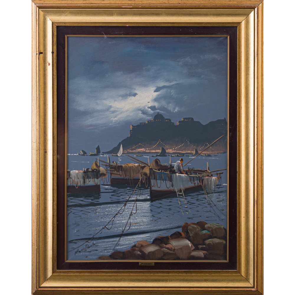 MARIO GALANTI, Marina con pescatori, Olio su tela