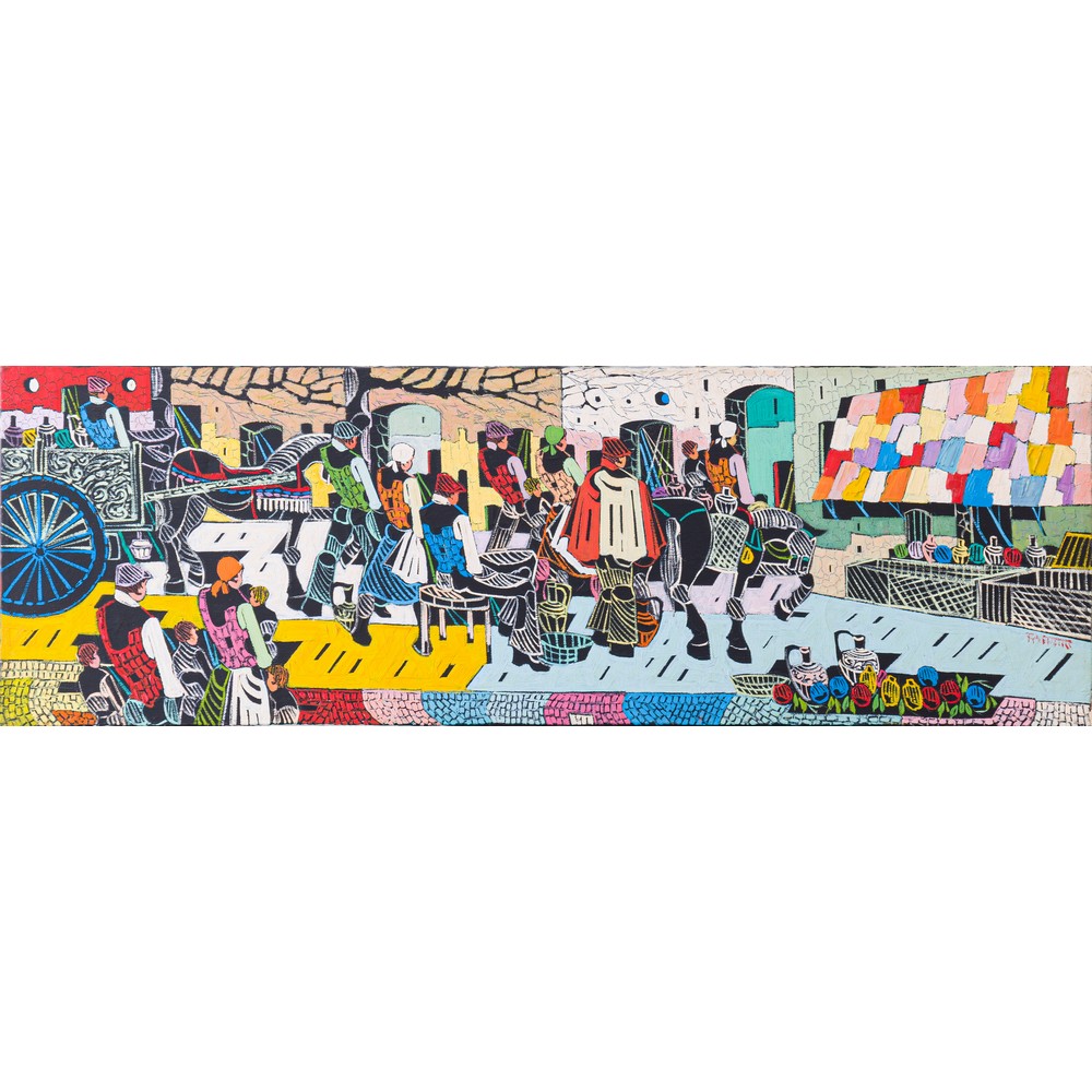 MARCELLO PIACENTINI, Mercato con personaggi, Olio su tela
