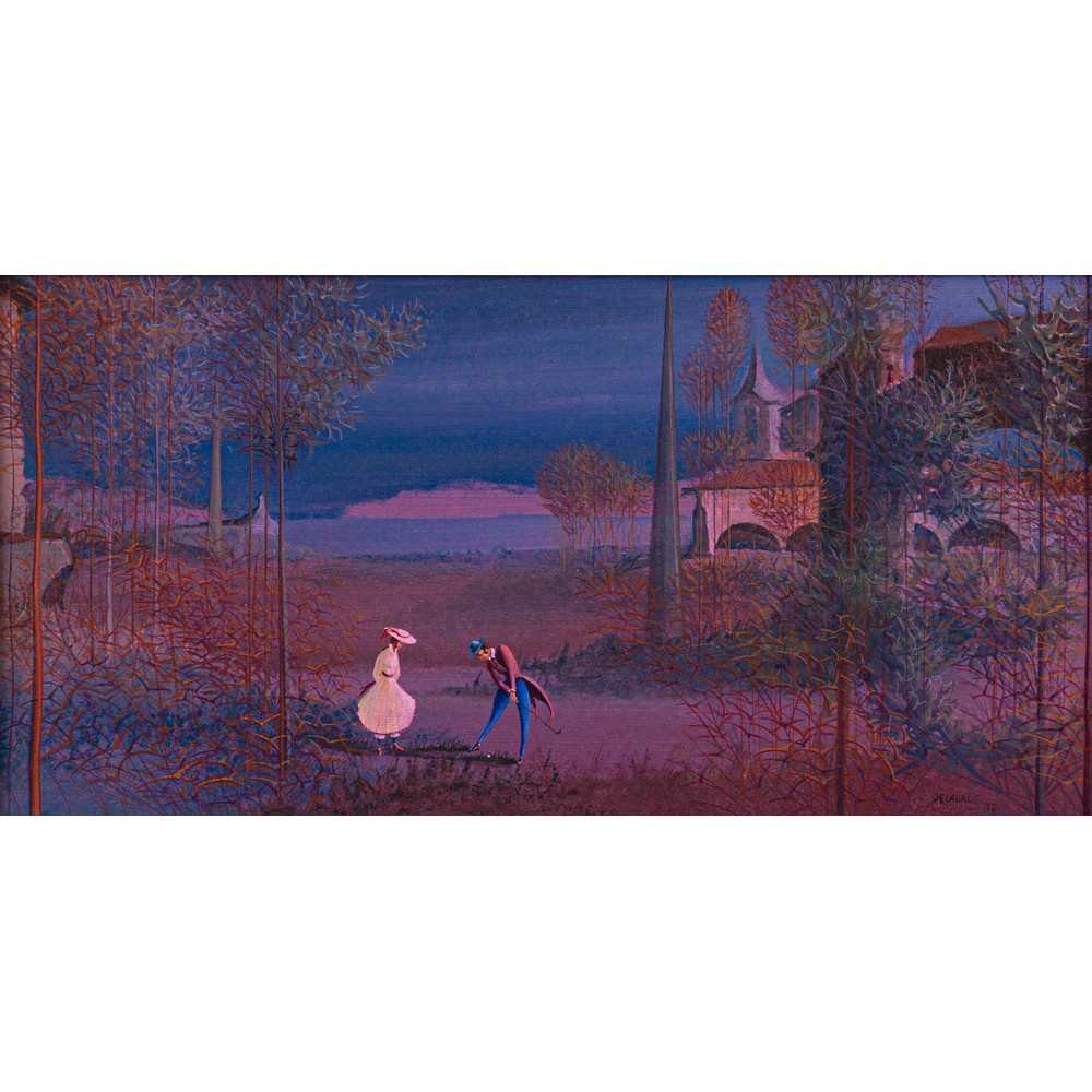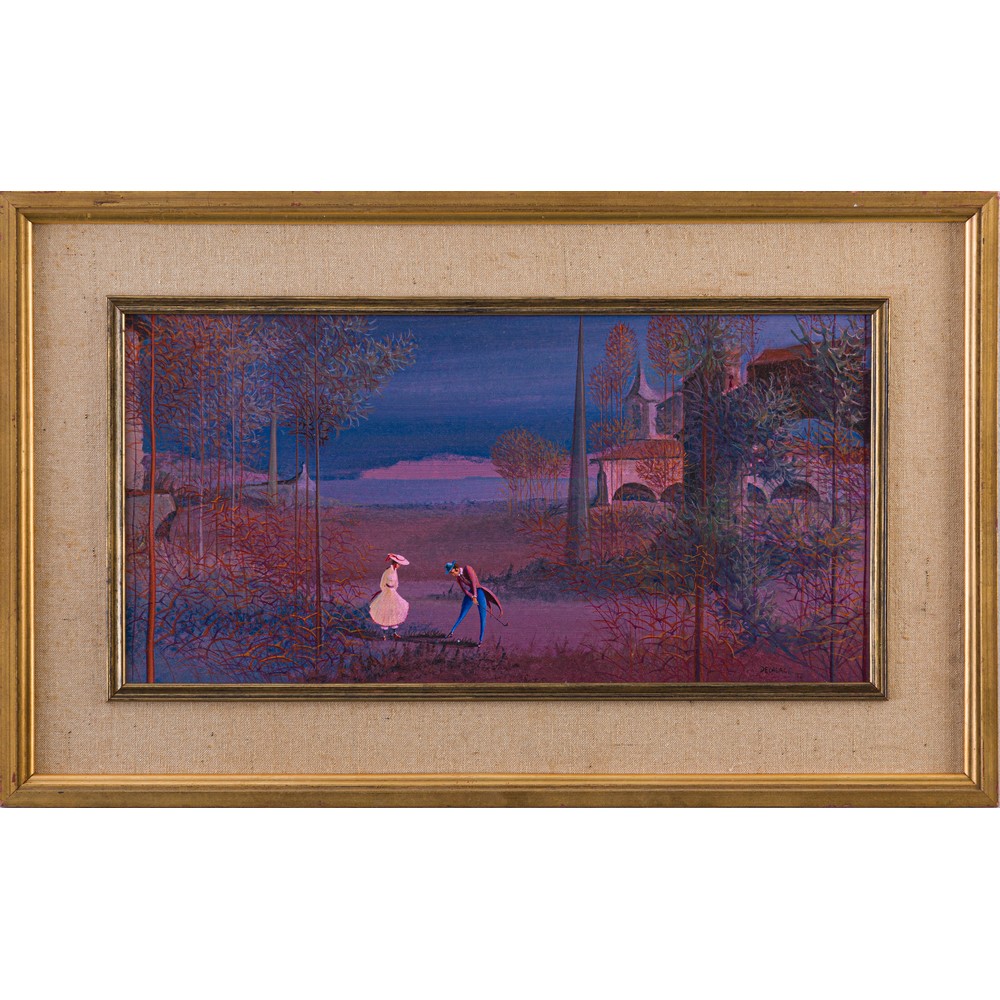 PITTORE DEL XX SECOLO, Paesaggio con figure, Olio su tela