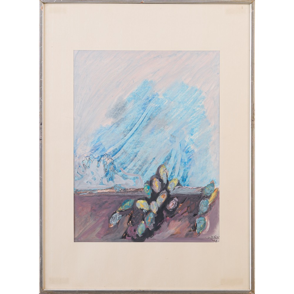 PITTORE XX SECOLO, Pale di fichi d'india, Tempera su carta