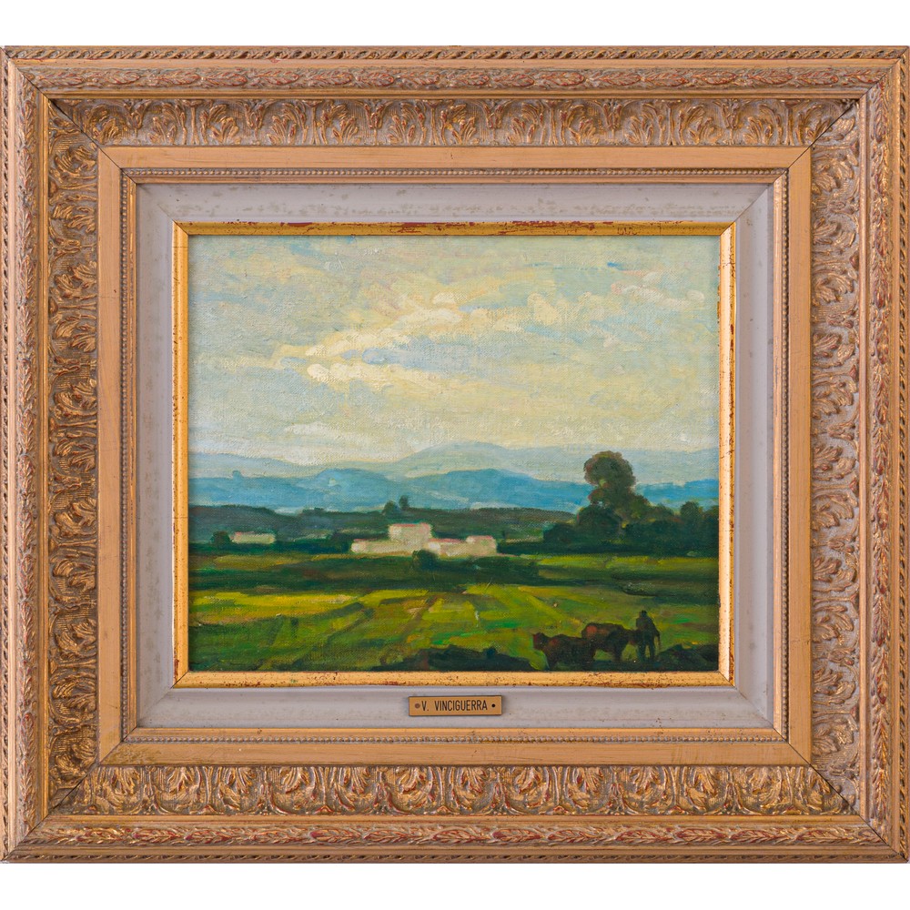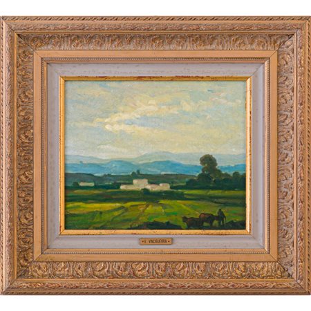 VINCENZO VINICIGUERRA, Paesaggio, Olio su cartone telato