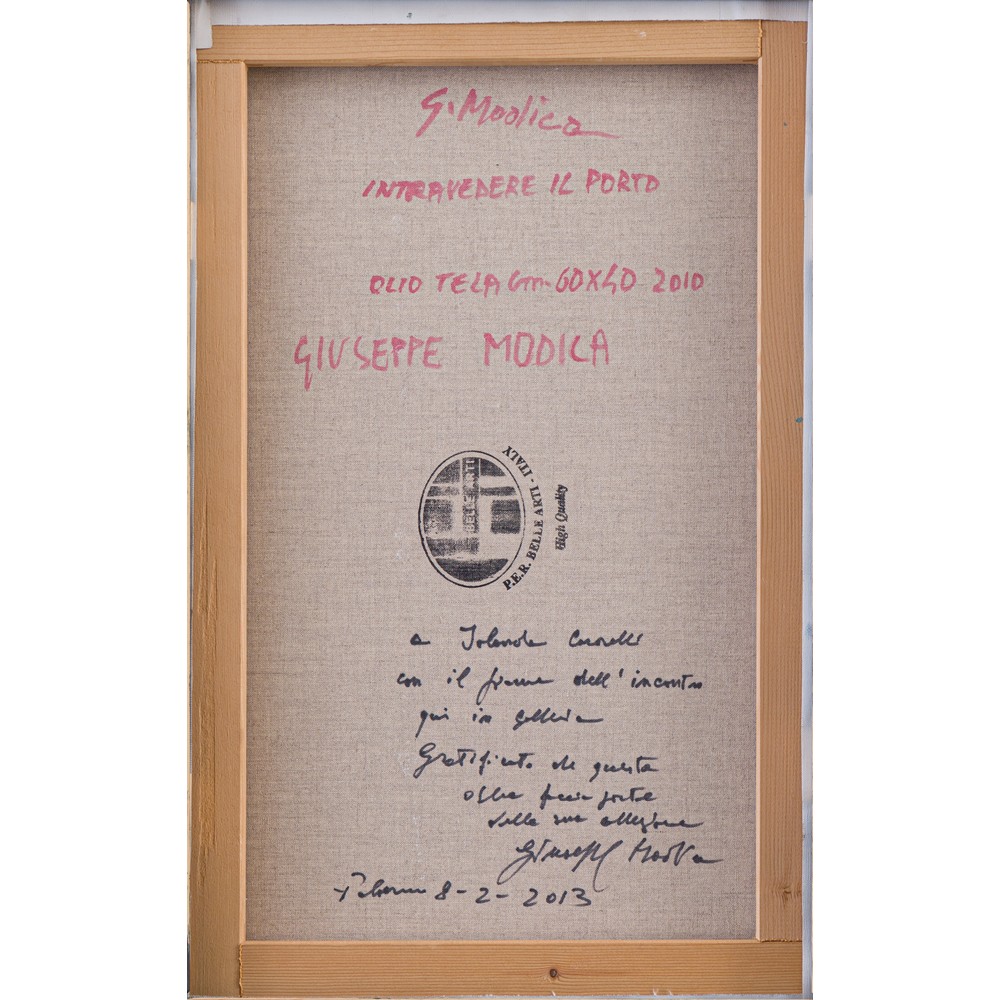 Lot 214 | GIUSEPPE MODICA, Intravedere il porto, Olio su tela