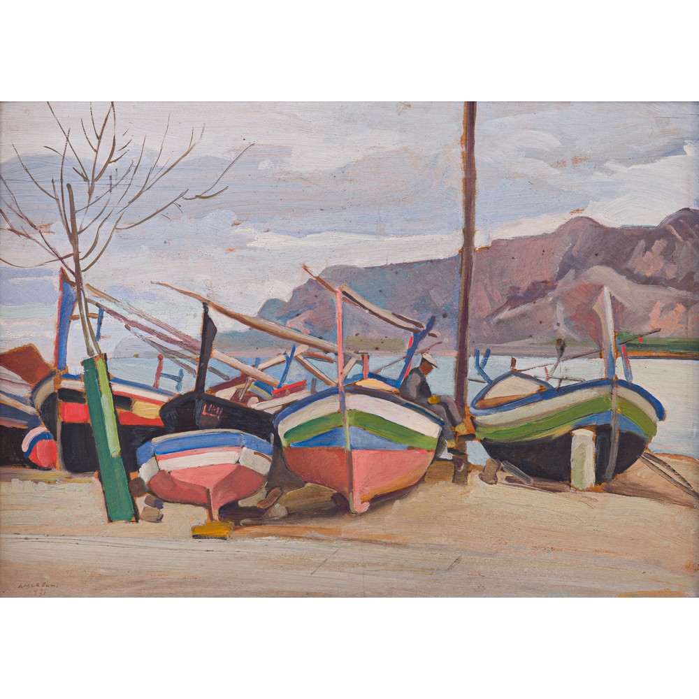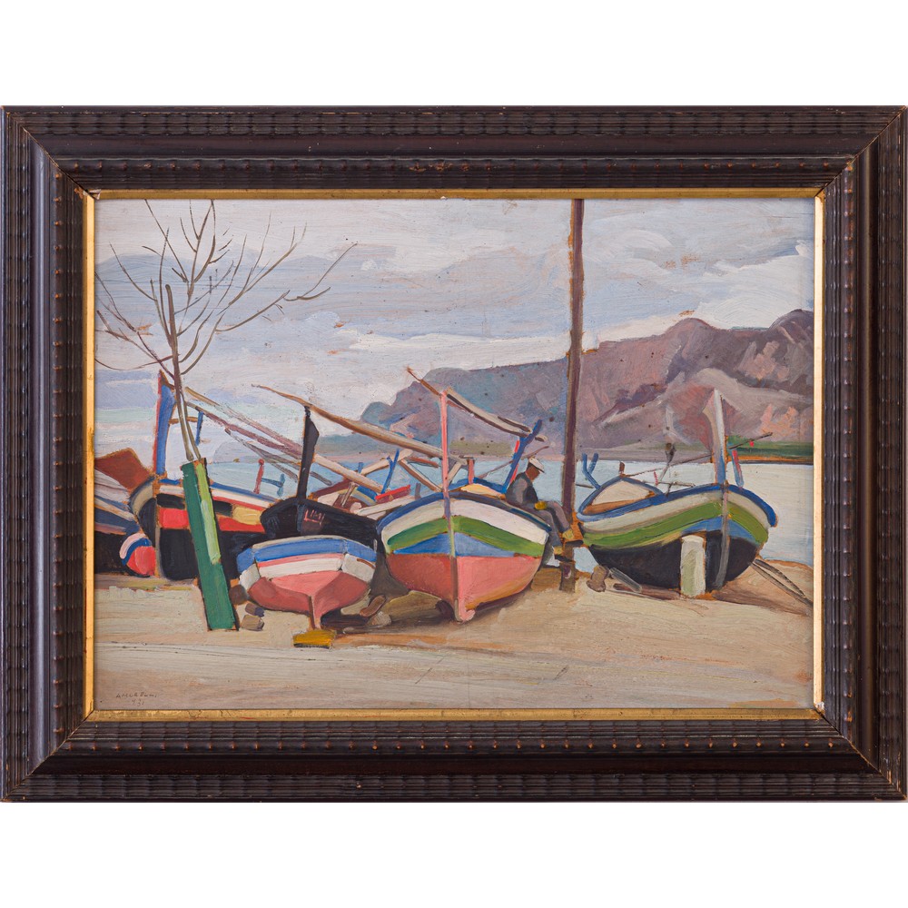 ALFONSO AMORELLI, Barche a secco a Palermo, Olio su tavola