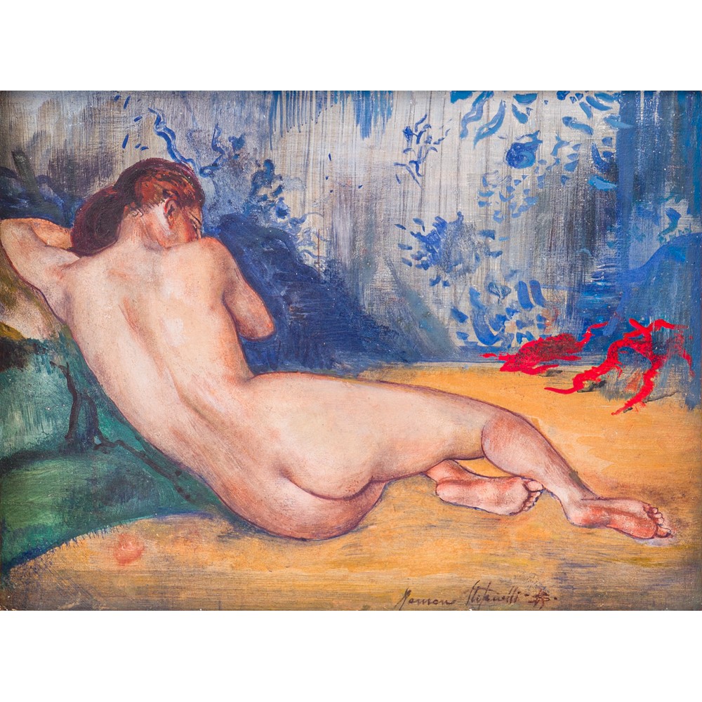 ROMANO STEFANELLI, Nudo di schiena, Olio su tavola