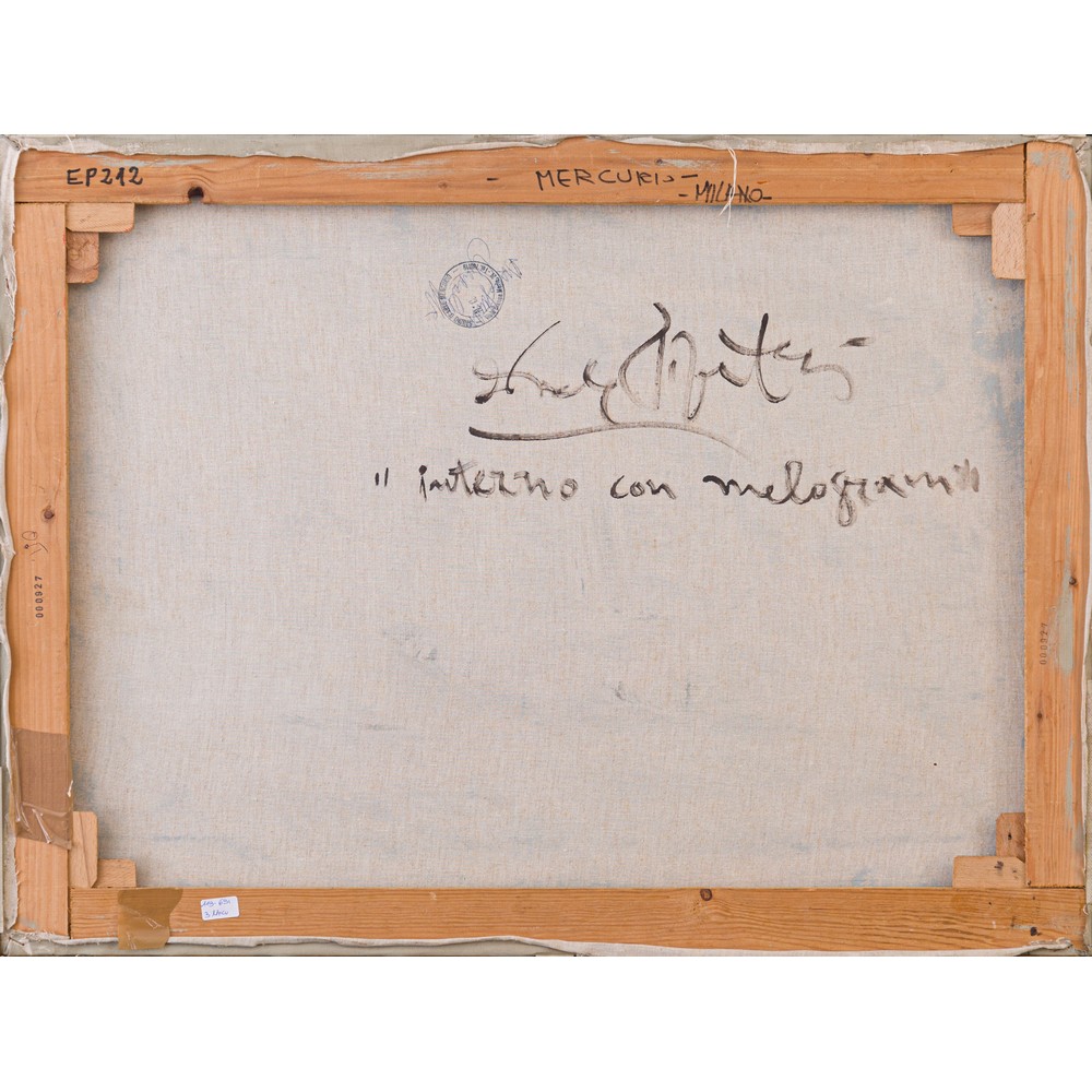 ERCOLE PIGNATELLI, Interno con melograni, Olio su tela