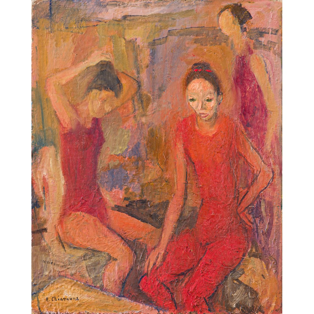 ALBERTO CHIANCONE, Ballerine in rosso, Olio su cartone telato