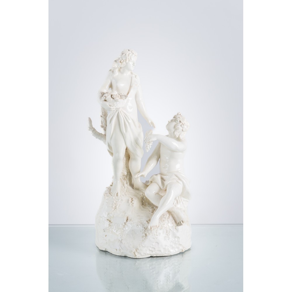 Gruppo scultoreo di epoca Ferdinando IV di Borbone in terraglia bianca raffigurante "Personaggi mitologici"