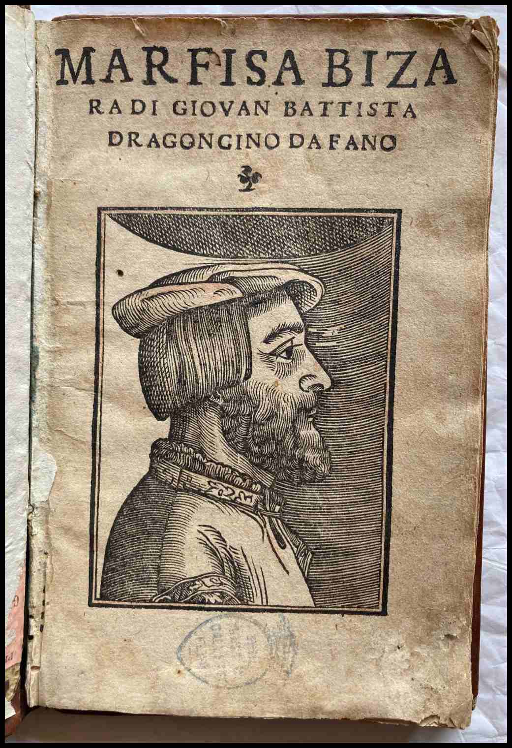 Marfisa bizara di Giovan Battista Dragoncino da Fano. Colophon, leaf F8v:) Venice, Giouanni Andrea Vauasore detto Guadagnino, a di VI di febrario 1546.