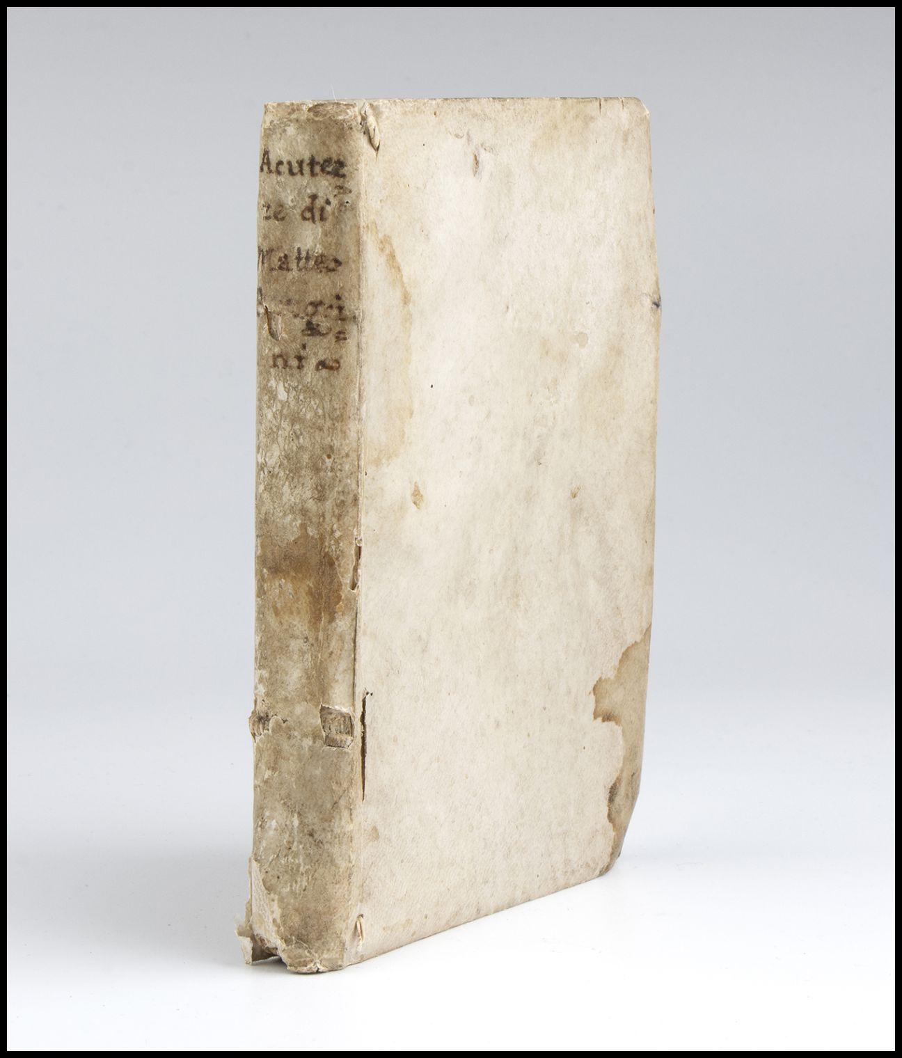 Legatura moderna con dorso coevo in pergamena. Prima e ultima pagina bianca con strappi e mancanze. Nel complesso in ottimo stato.