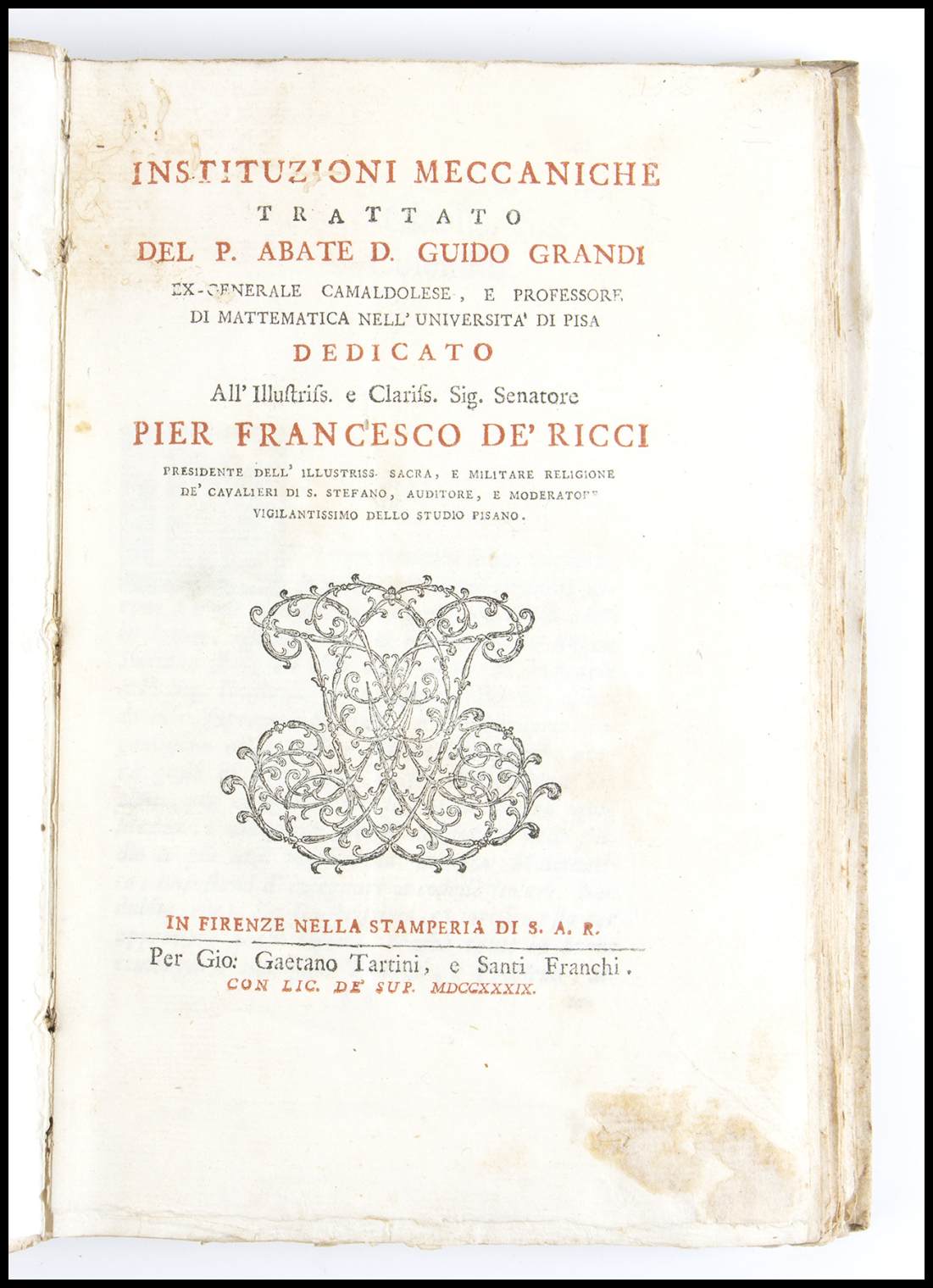 INSTITUZIONI MECCANICHE. Firenze Tartini e Franchi 1739