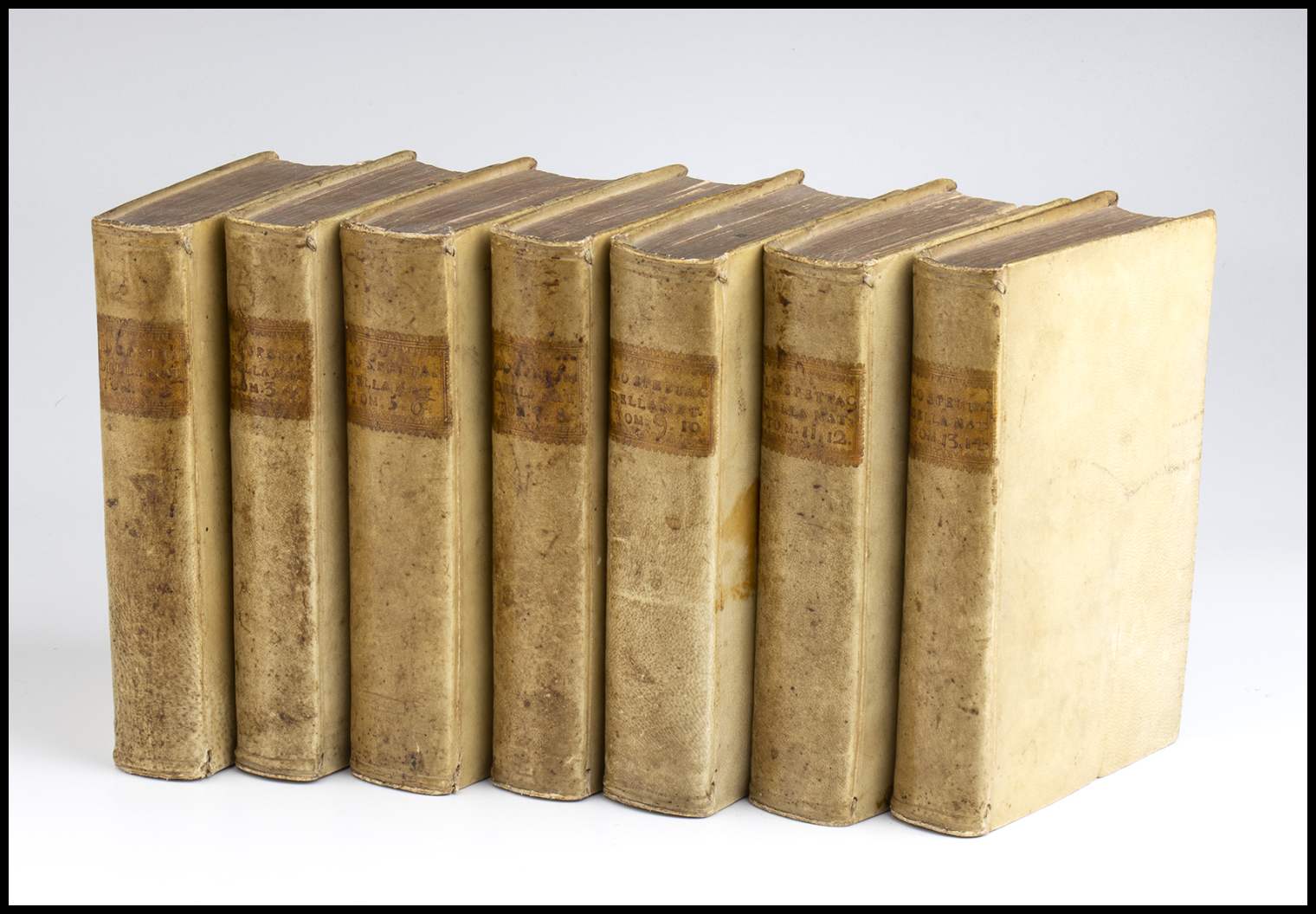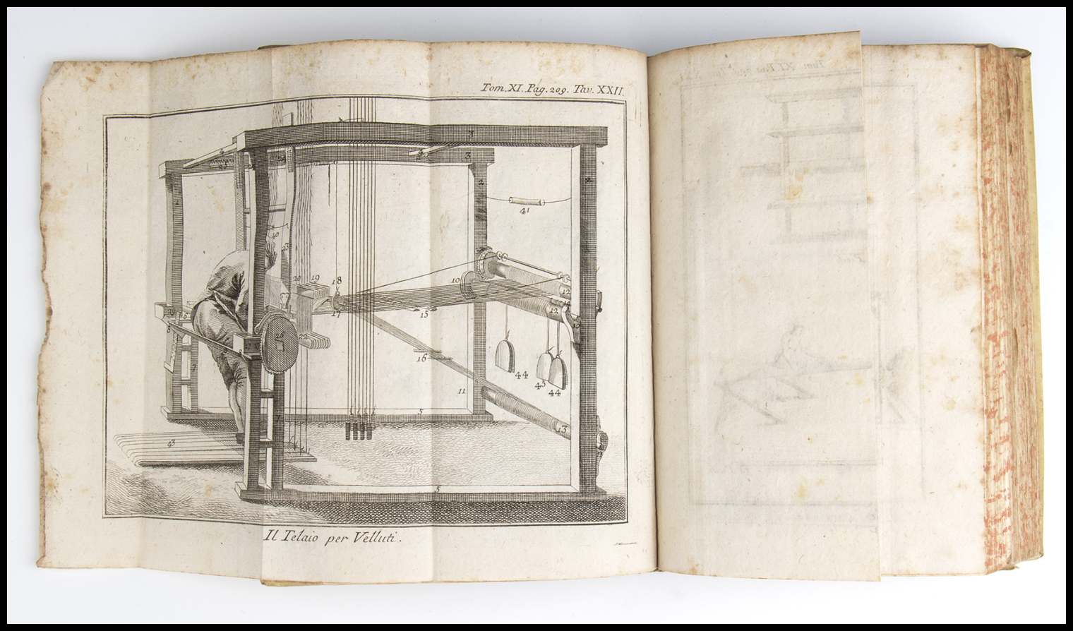 14 tomi rilegati in 7 volumi. Legatura in piena pelle, con titoli incisi su dorsi. Con numerose tavole pieghevoli incise a bulino. Ottimo stato.