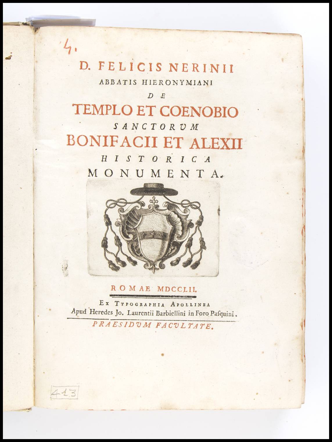 FELICE MARIA NERINI De templo et coenobio sanctorum Bonifacii et Alexii...