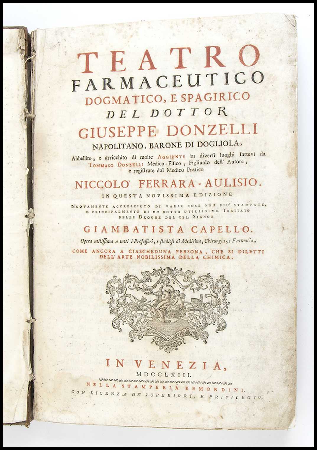 GIUSEPPE DONZELLI TEATRO FARMACEUTICO DOGMATICO E SPAGIRICO. In venezia 1763...