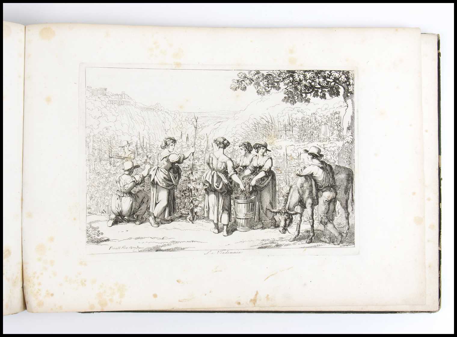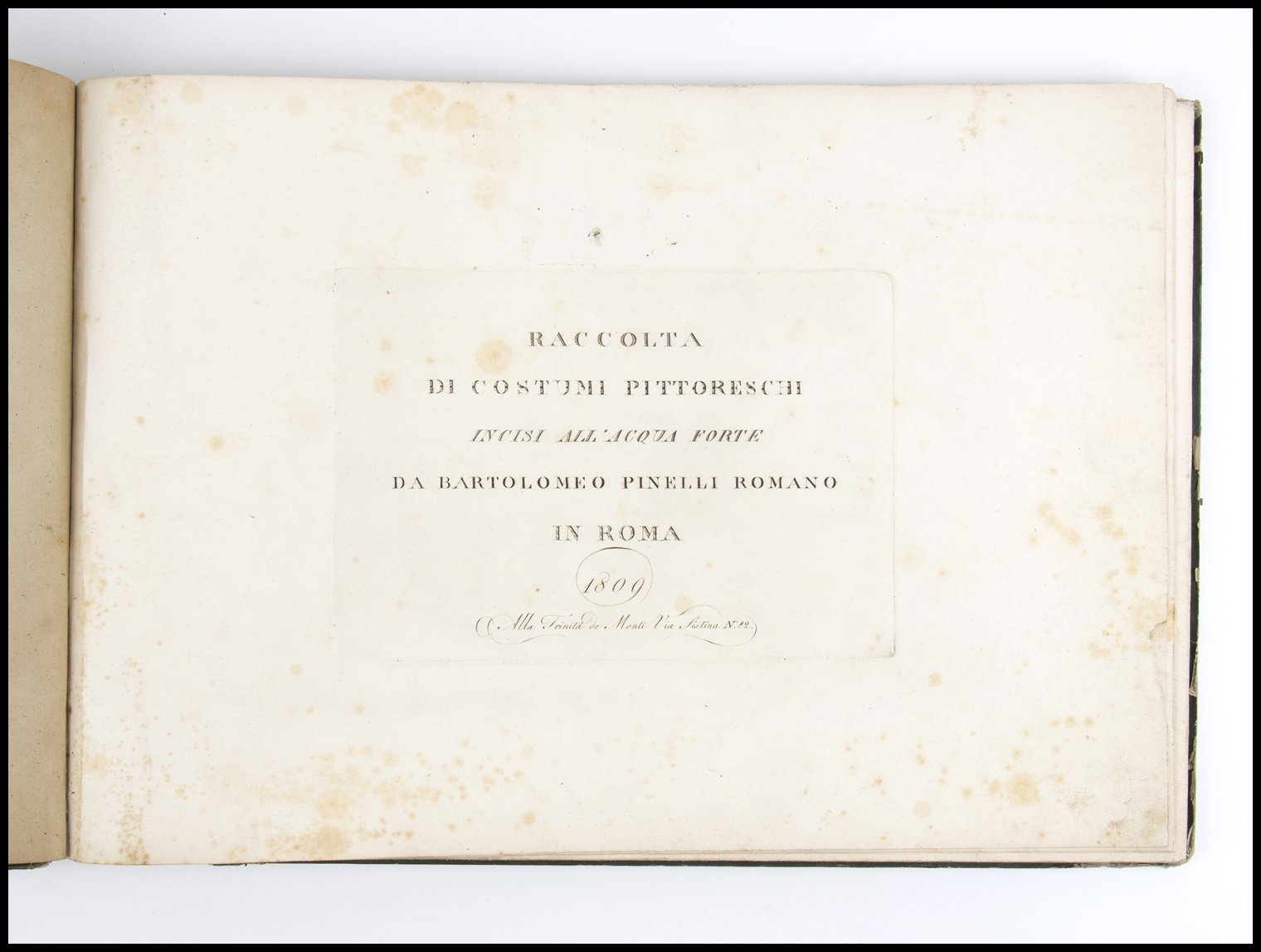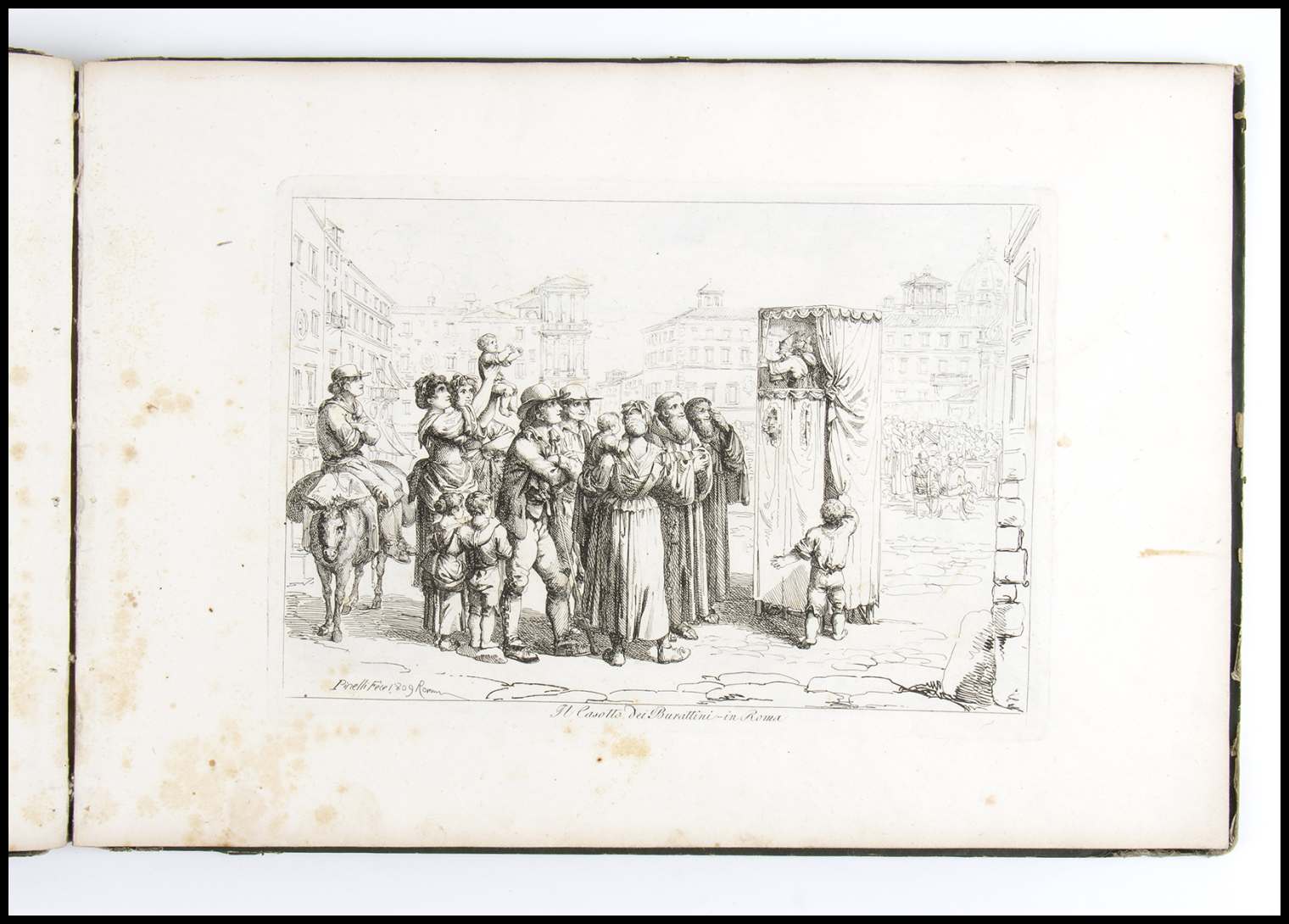 In 2. Rara prima edizione della prima raccolta di costumi pittoreschi dell' agro romano, assai celebre e ricercata così definita da Cicognara 1762: "Questi sono tolti la più parte dalle abitudini del popolo romano, e sono espressi con una verità e fedeltà insuperabile". L' ultima tavola rappresenta il riposo dell' autore tra le rovine con il motto scolpito sulla lapide: "Tutto finisce”.