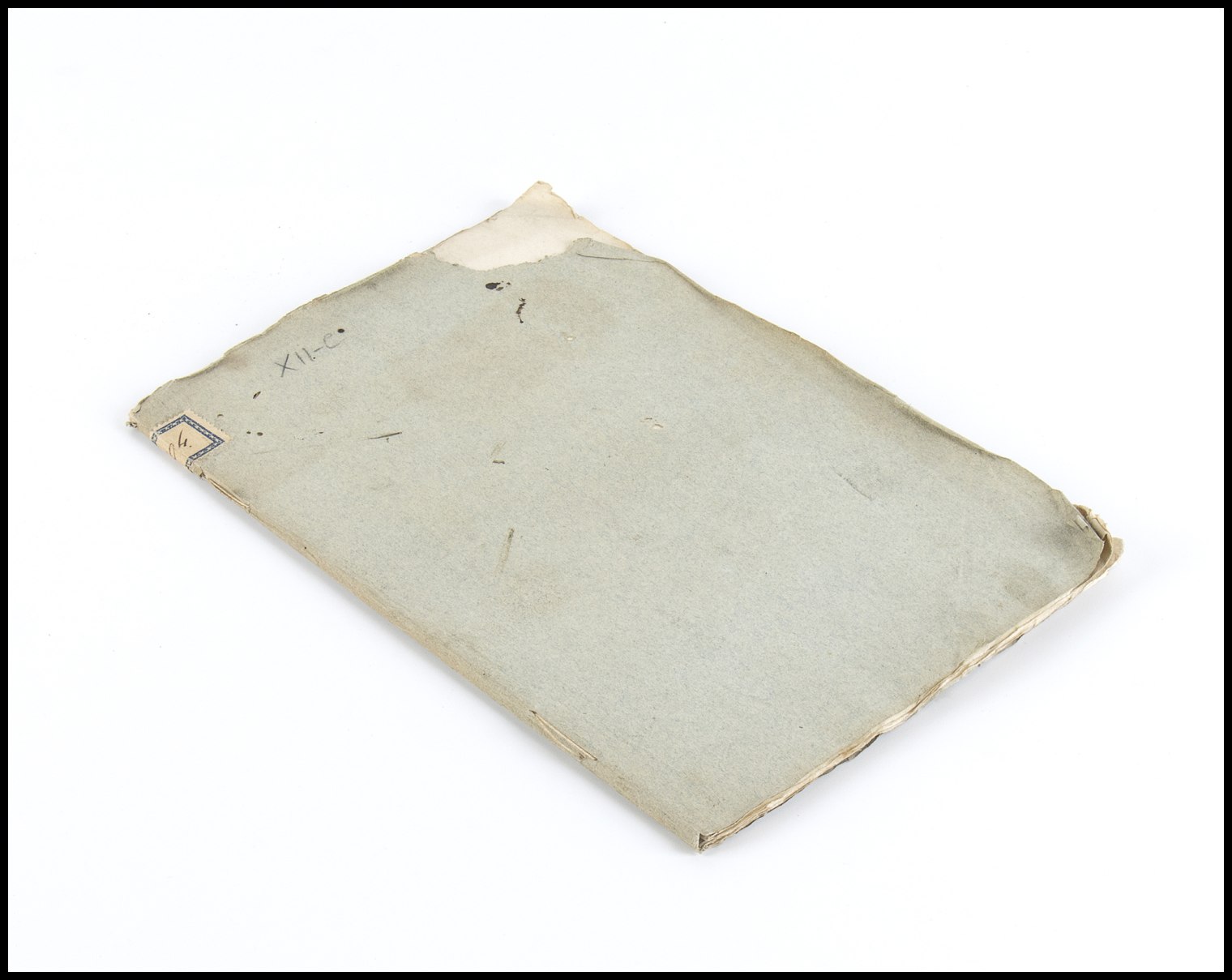 Frontespizio con taglio in alto a destra, lavoro di tarlo che interessa una piccola parte del testo.