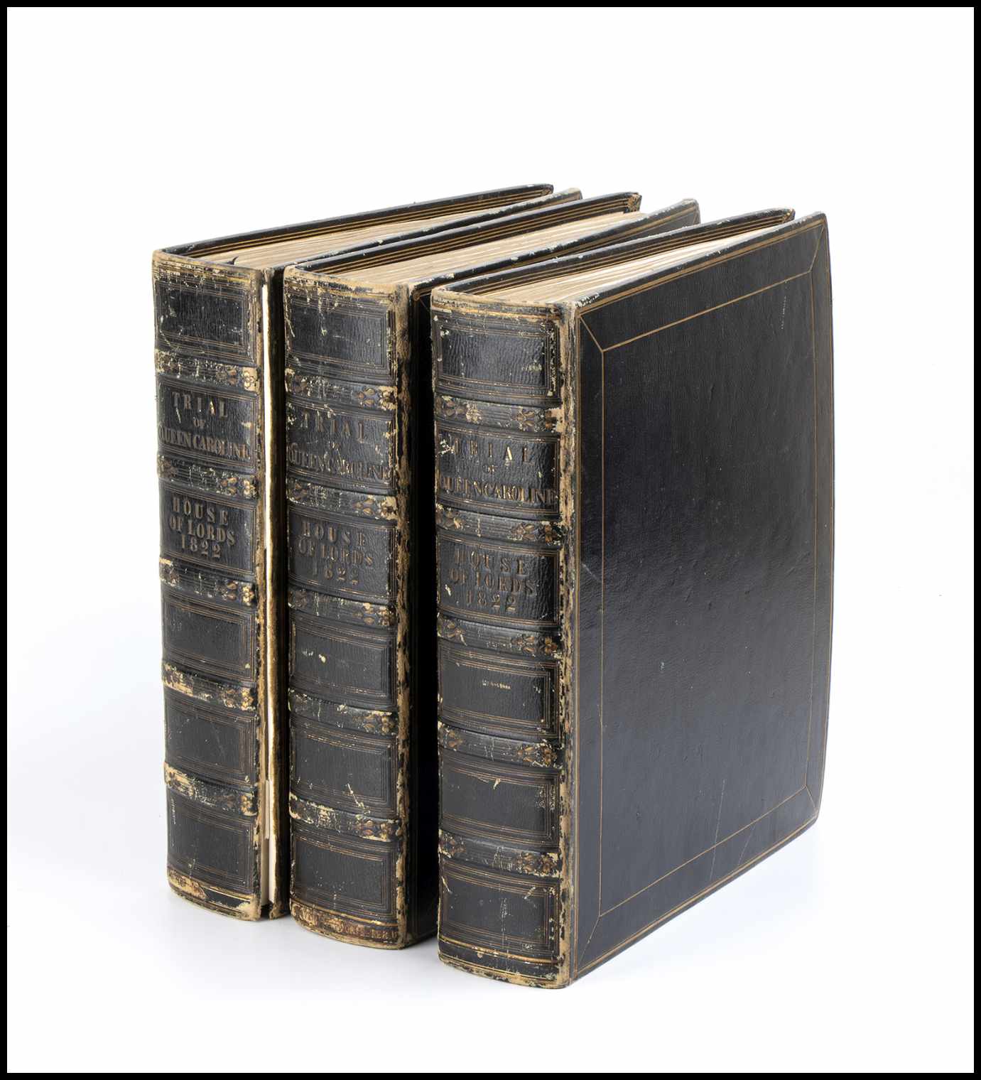Collezione di cimeli relativi al processo alla regina Carolina del 1820 montato in tre grandi album