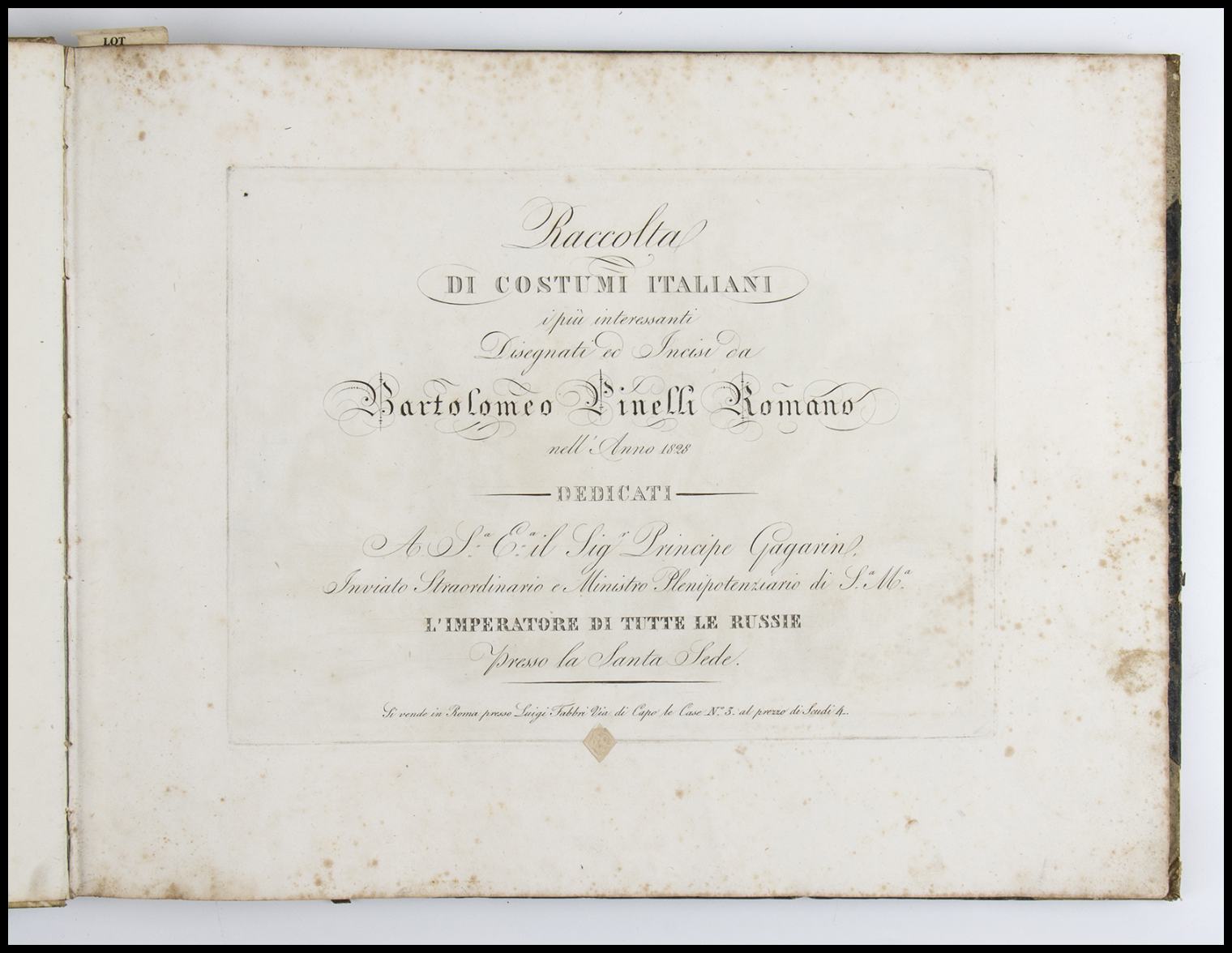 BARTOLOMEO PINELLI Raccolta di costumi italiani. Roma 1828 Folio oblungo....