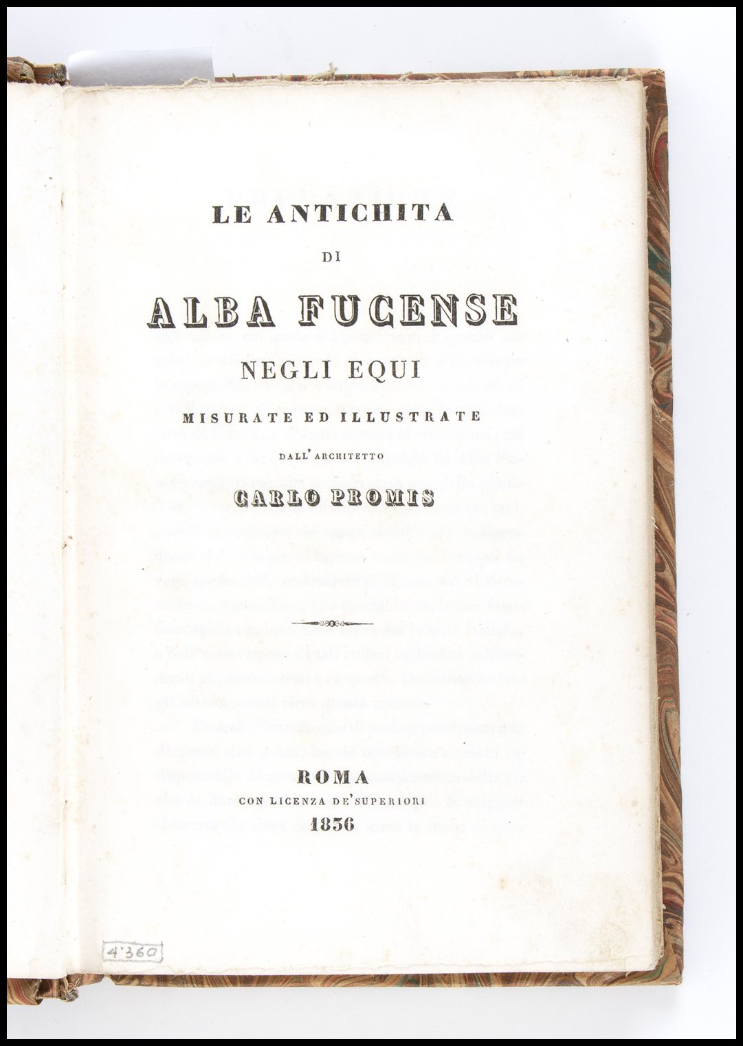 Lot 86 | CARLO PROMIS LE ANTICHITA DI ALBA FUCENSE NEGLI EQUI. Roma 1836 In 4 257 p.,...