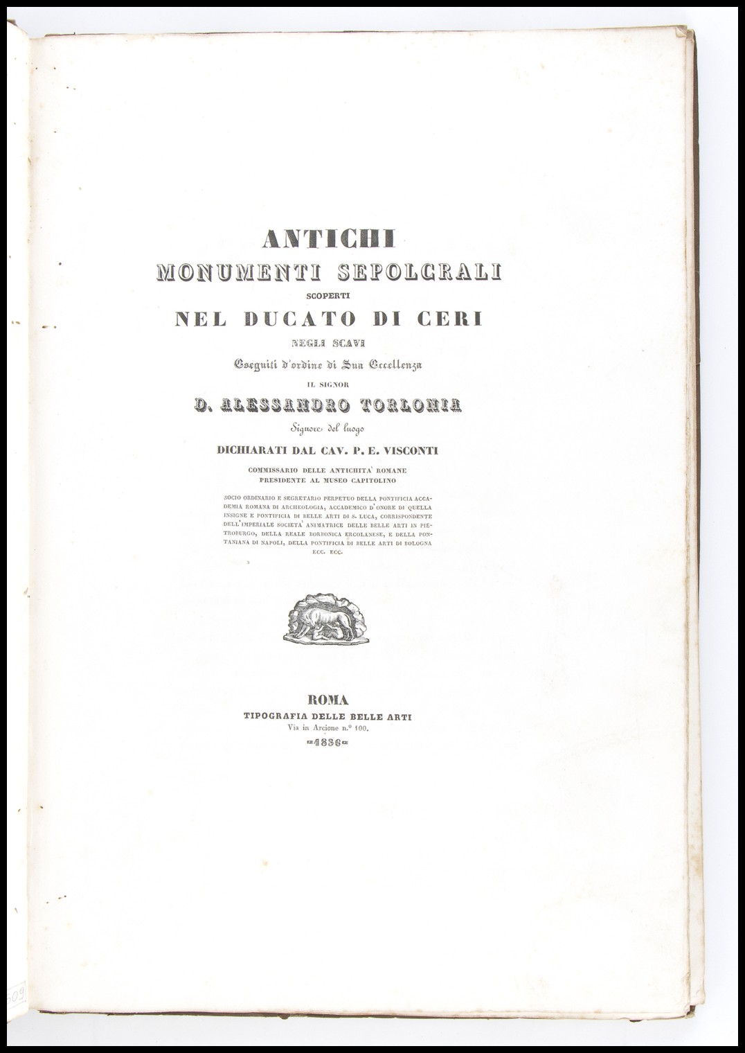 Lot 87 | PIETRO ERCOLE VISCONTI ANTICHI MONUMENTI SEPOLCRALI SCOPERTI NEL DUCATO DI...